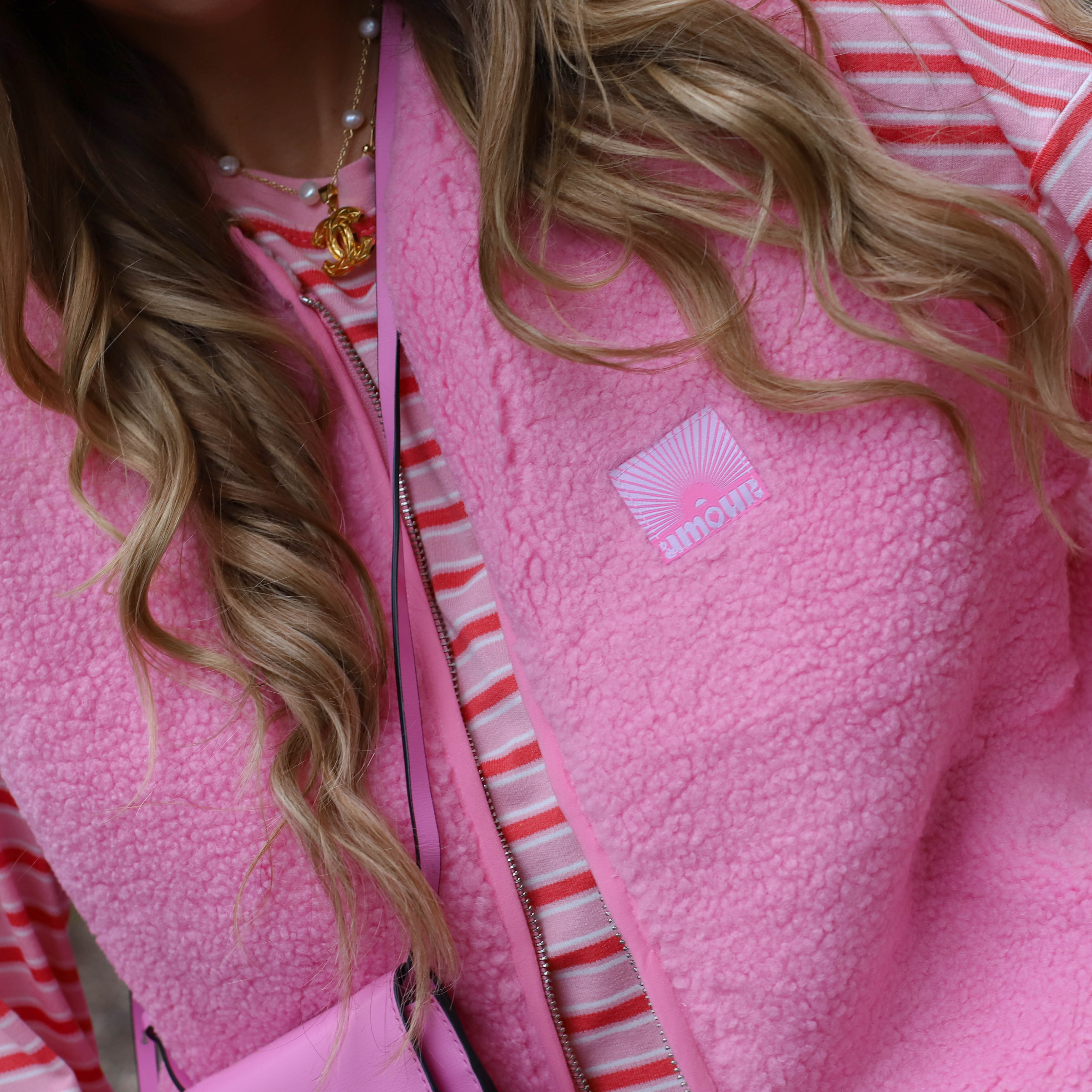 Reversible Gilet teddy patch Linde fuchsia
