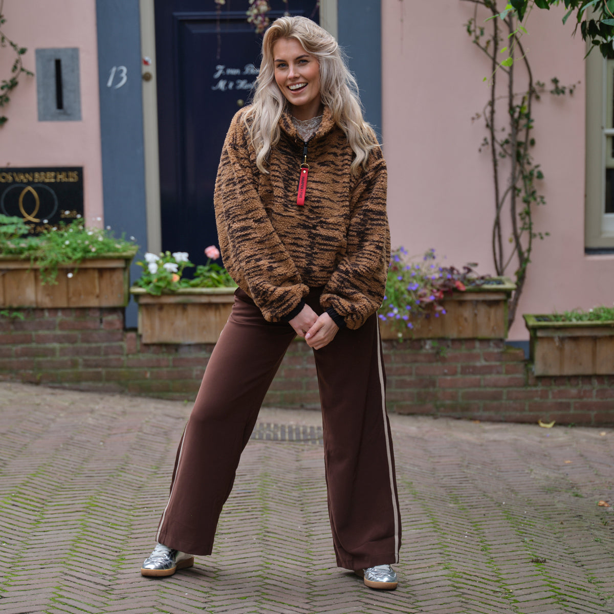 De DAGMAR jumper in Trashy Tiger Warm print is een echte showstopper. De zachte stof en opvallende print brengen speelsheid in je outfit. Perfect om kleur en energie toe te voegen aan koude dagen.