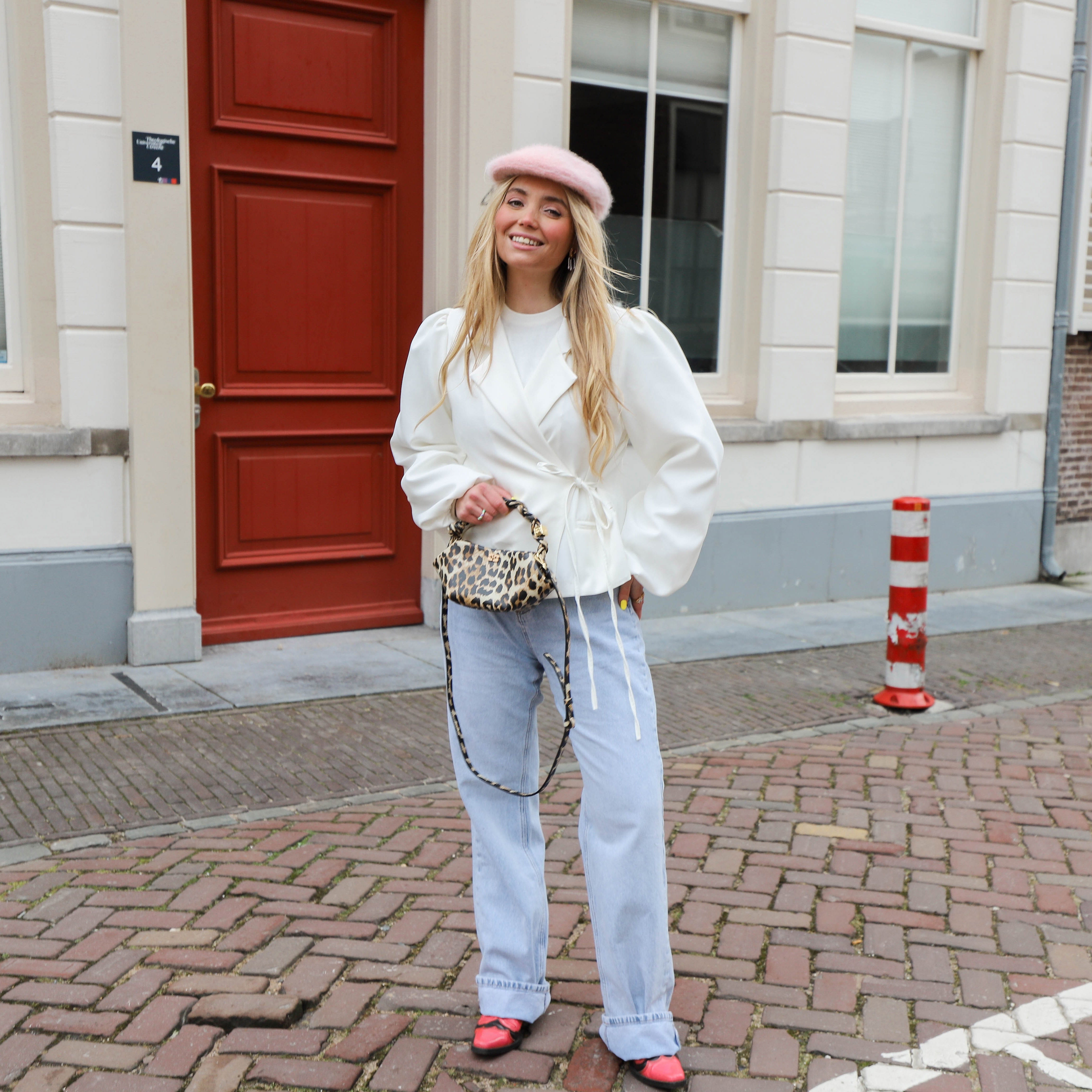 Dit witte jasje is een echte eyecatcher! Het jasje heeft een getailleerde pasvorm met een overslag en een strikceintuur die je taille mooi accentueert. De pofmouwen geven het jasje een romantische touch. Combineer het met een jeans en een T-shirt voor een casual look of draag het op een jurk voor een meer geklede gelegenheid.