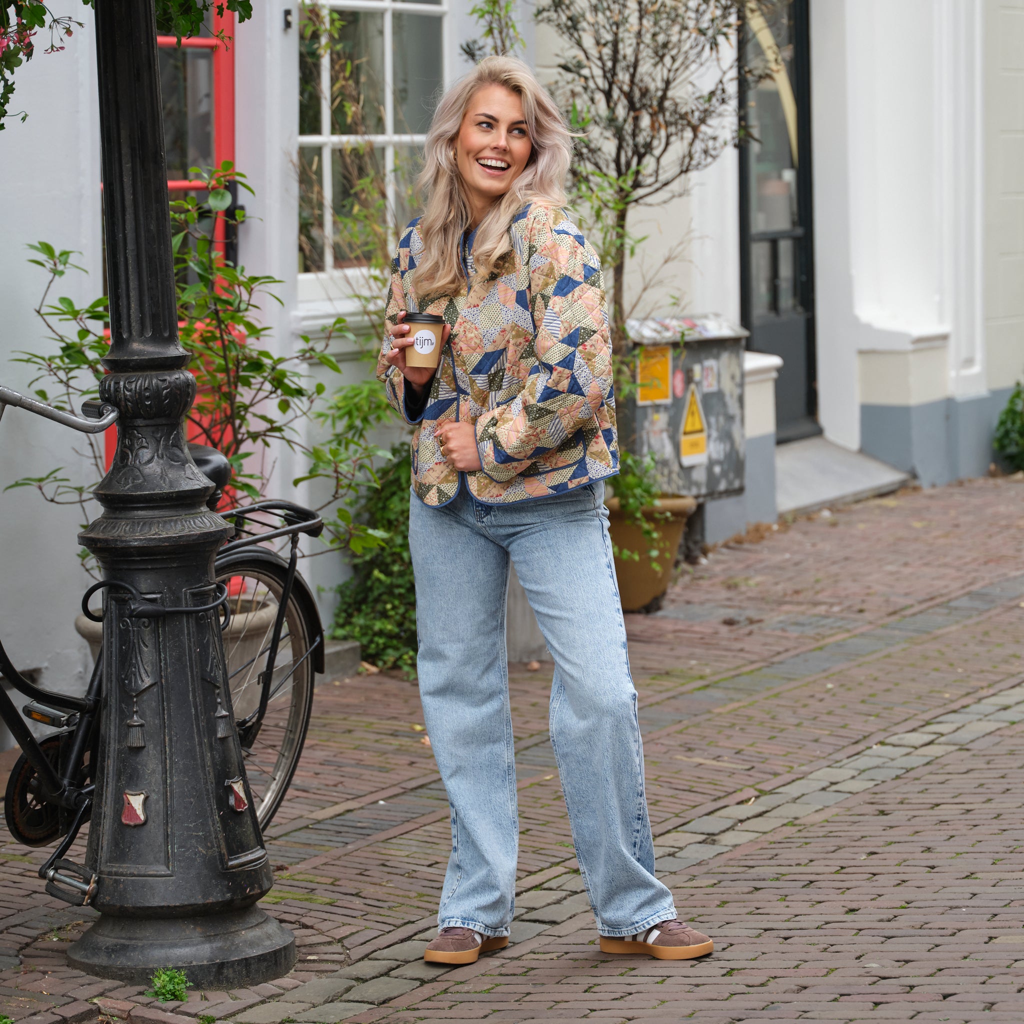 Dit charmante pc rikkie quilted jacket is een perfecte aanvulling op je garderobe. Het jack heeft een tijdloze patch print in blauwe tinten. De gewatteerde stof zorgt voor een comfortabele en warme pasvorm, terwijl de opgestikte zakken en de kraag de jas een klassieke uitstraling geven. De jas sluit met een rits en is ideaal voor de overgangsmaanden.
