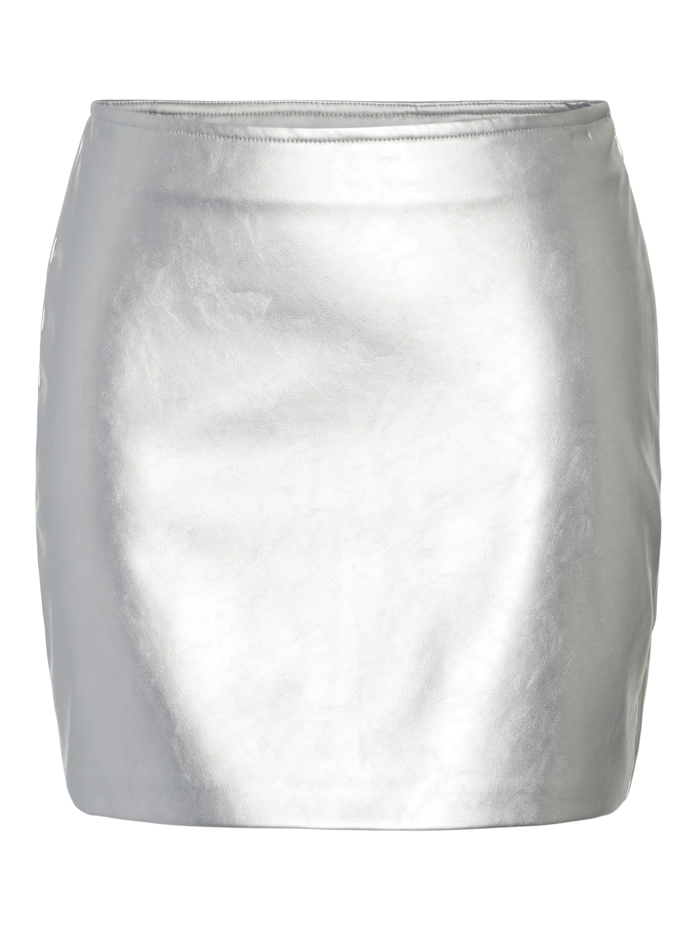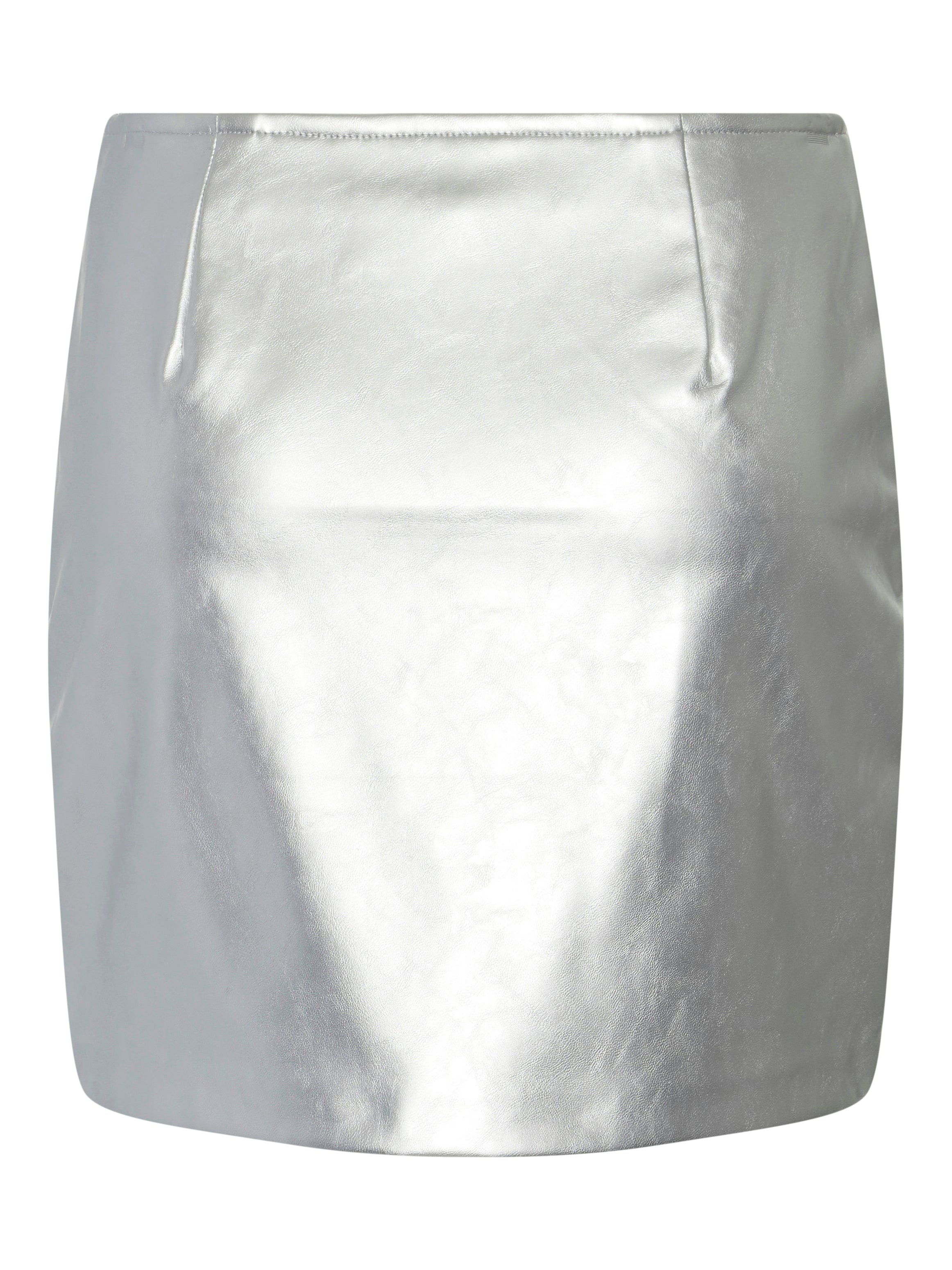 Mooi zilverkleurig rokje in een A-lijn model. Het rokje is glimmend en staat leuk met top of blouse