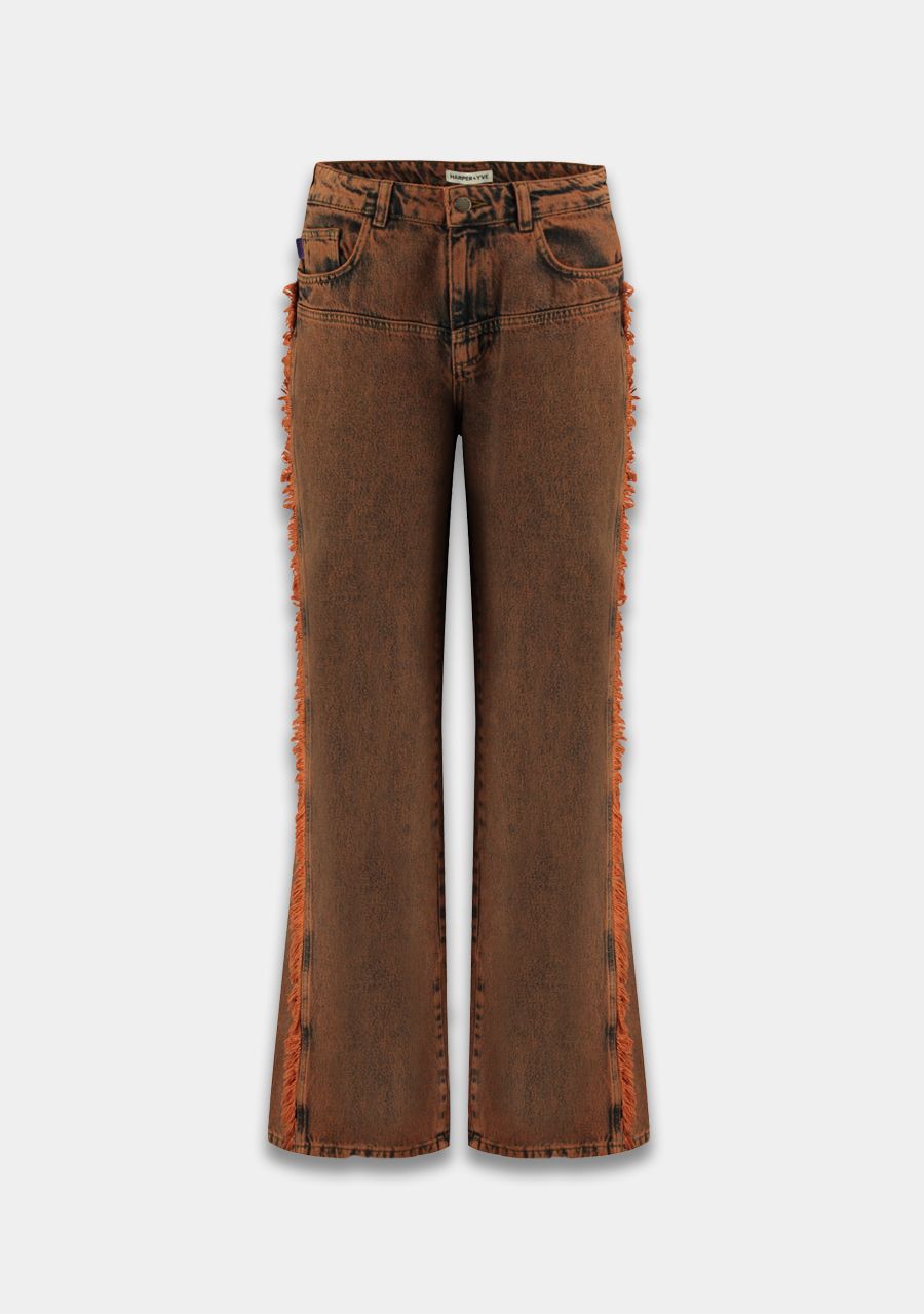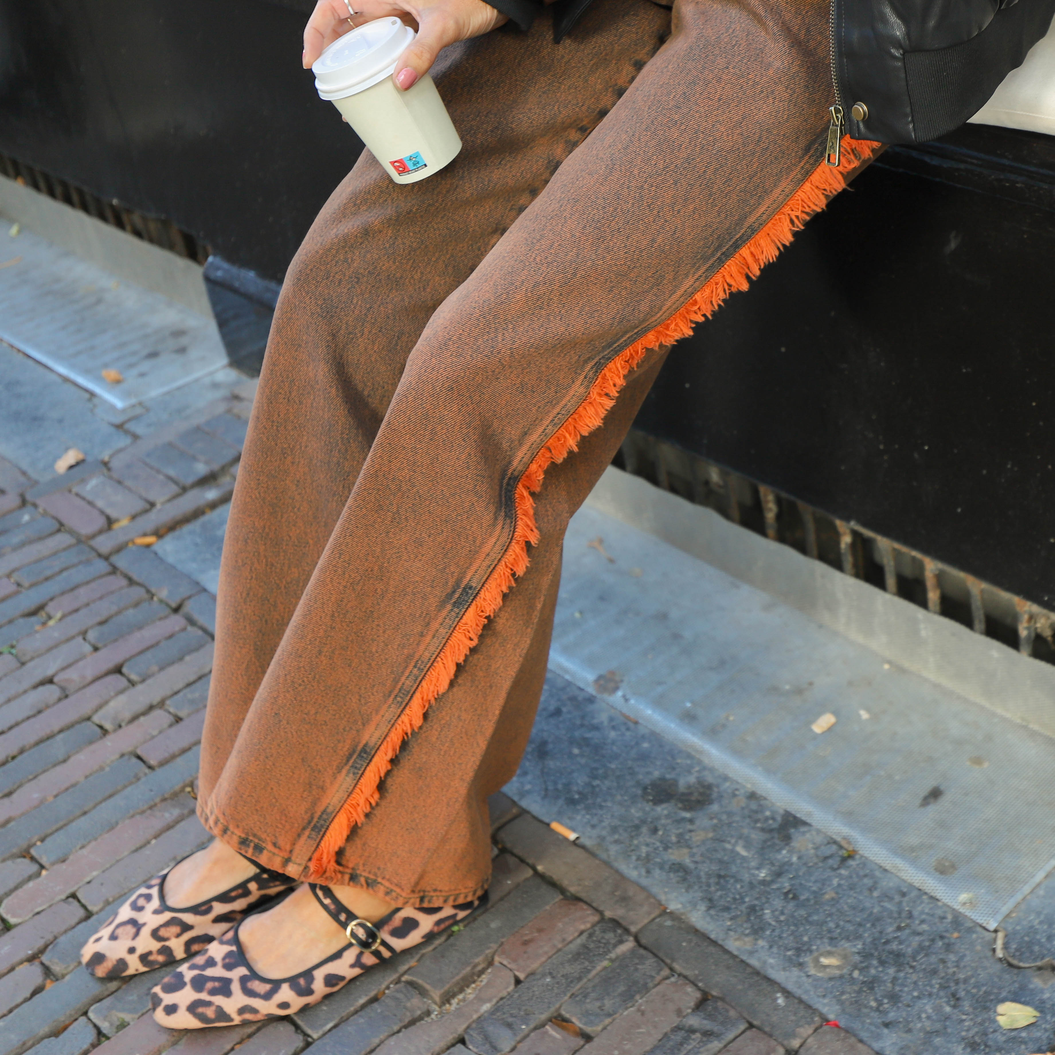 De CHARISSA broek in SPICED ORANGE is een katoenen high-waist fit met een rechte pijp. De warme oranjetint brengt pit in je herfstlook, en de stevige stof geeft een gestructureerde uitstraling. Combineer met een zachte knit of blazer voor een balanced look.