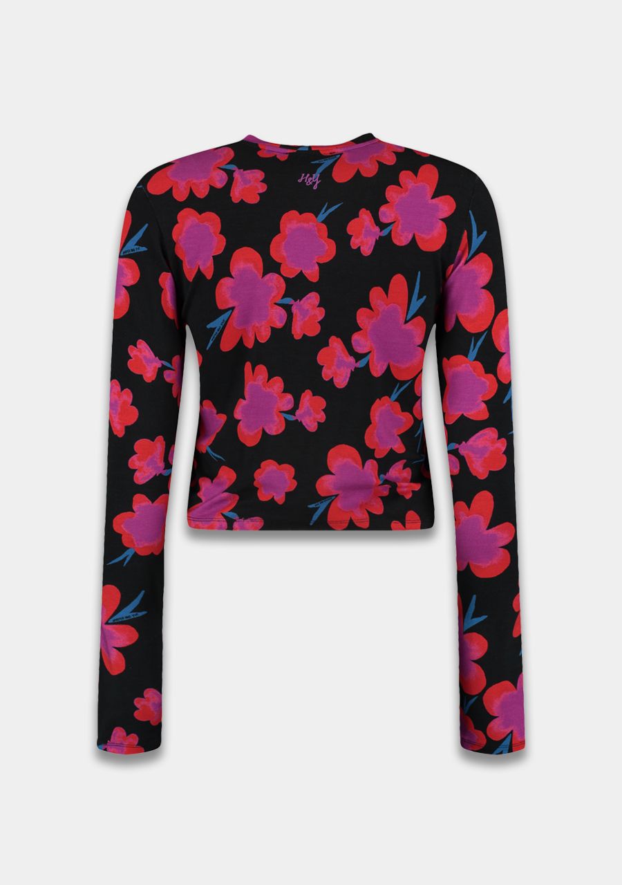 De JEFF top in ROMANCE ROSE is een aangesloten longsleeve van mesh met stretch, uitgevoerd in een warme bloemenprint. De transparante stof en hoge hals zorgen voor een speelse, gelaagde look die moeiteloos combineert met knitwear of een co-ord pant. Floral meets fierce.