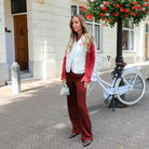 Geef je outfit een trendy twist met deze bordeauxrode joggingbroek. De broek heeft een recht model en een elastische tailleband. De broek heeft een klassieke uitstraling, perfect te combineren met diverse looks. Wat dacht je van een gilet, net zoals ons model?