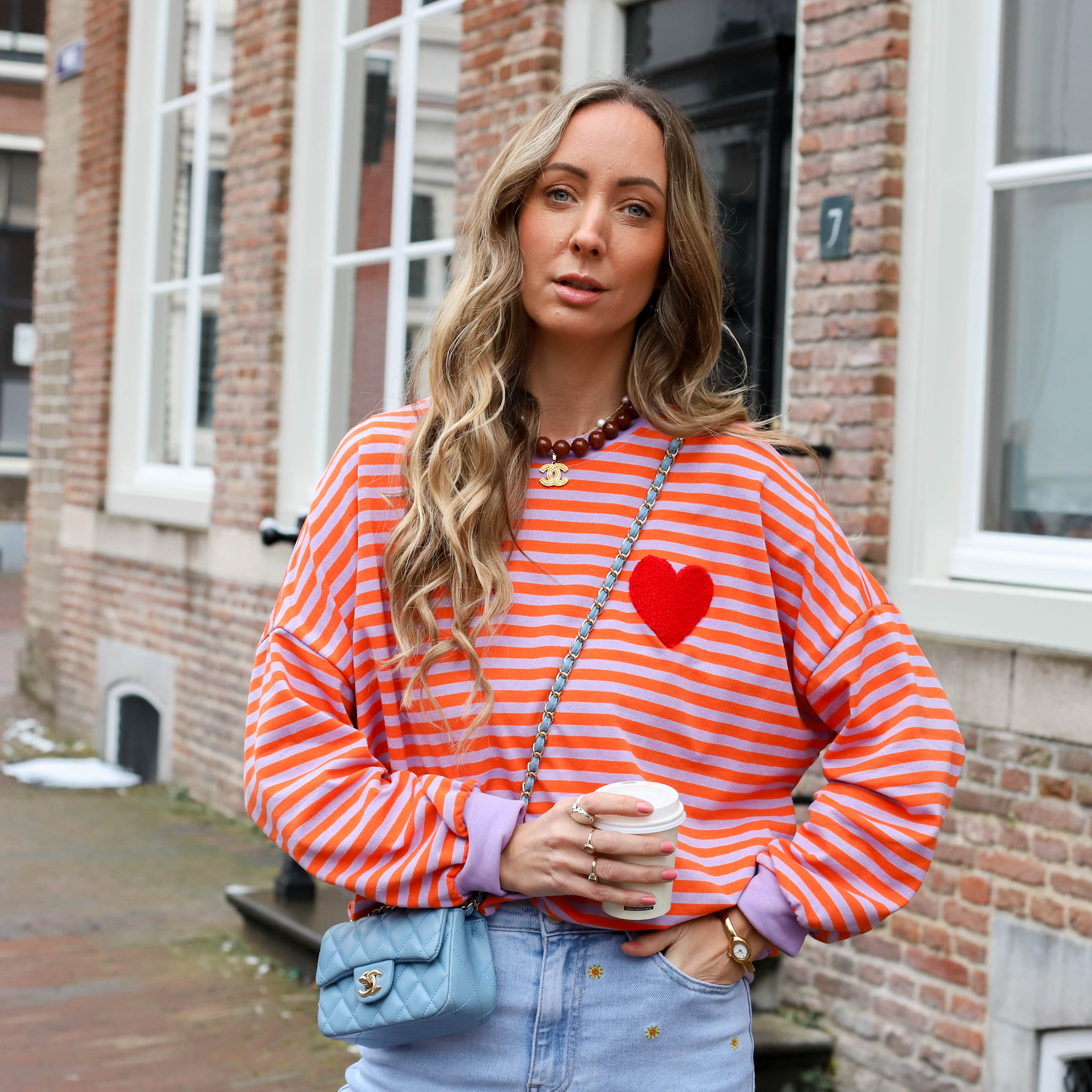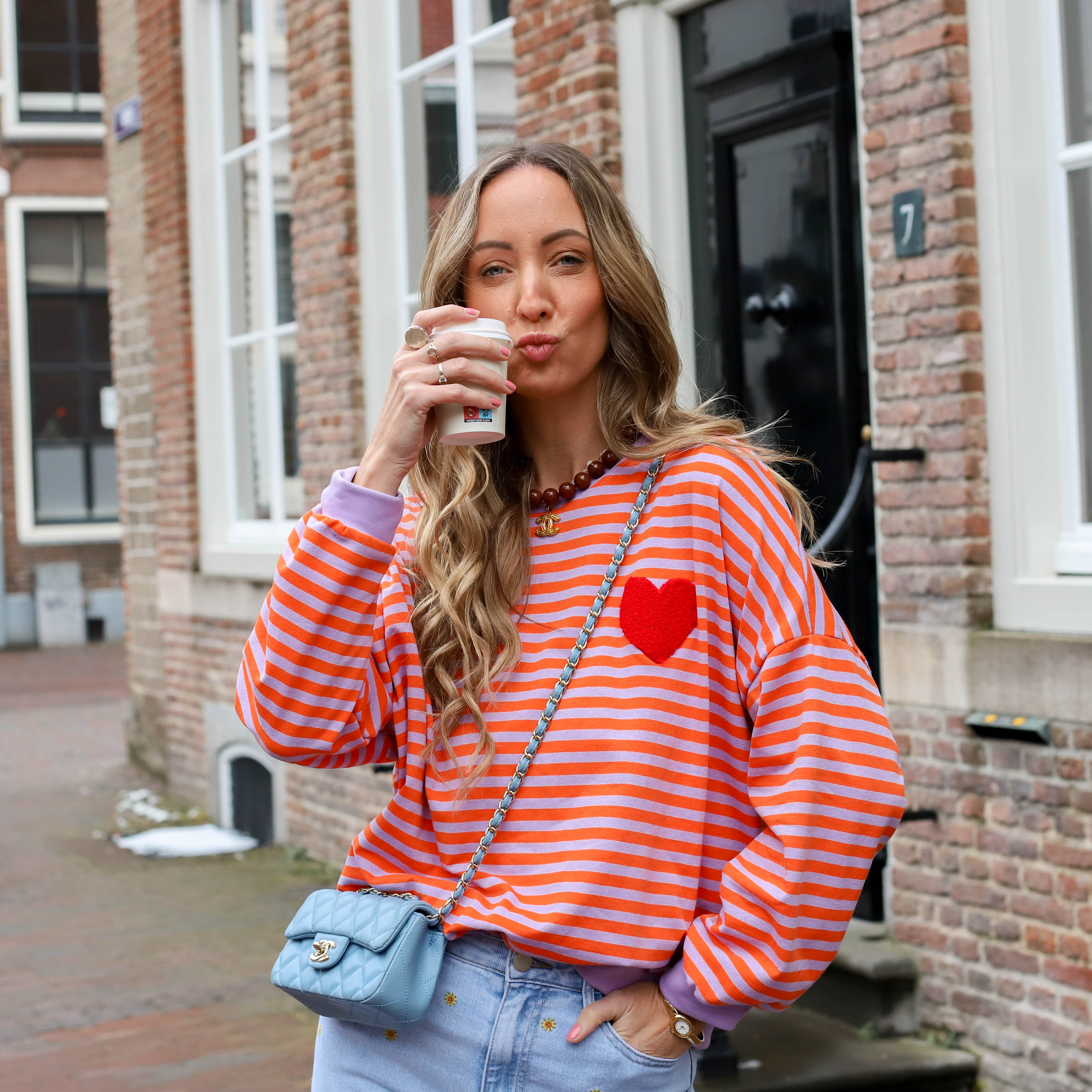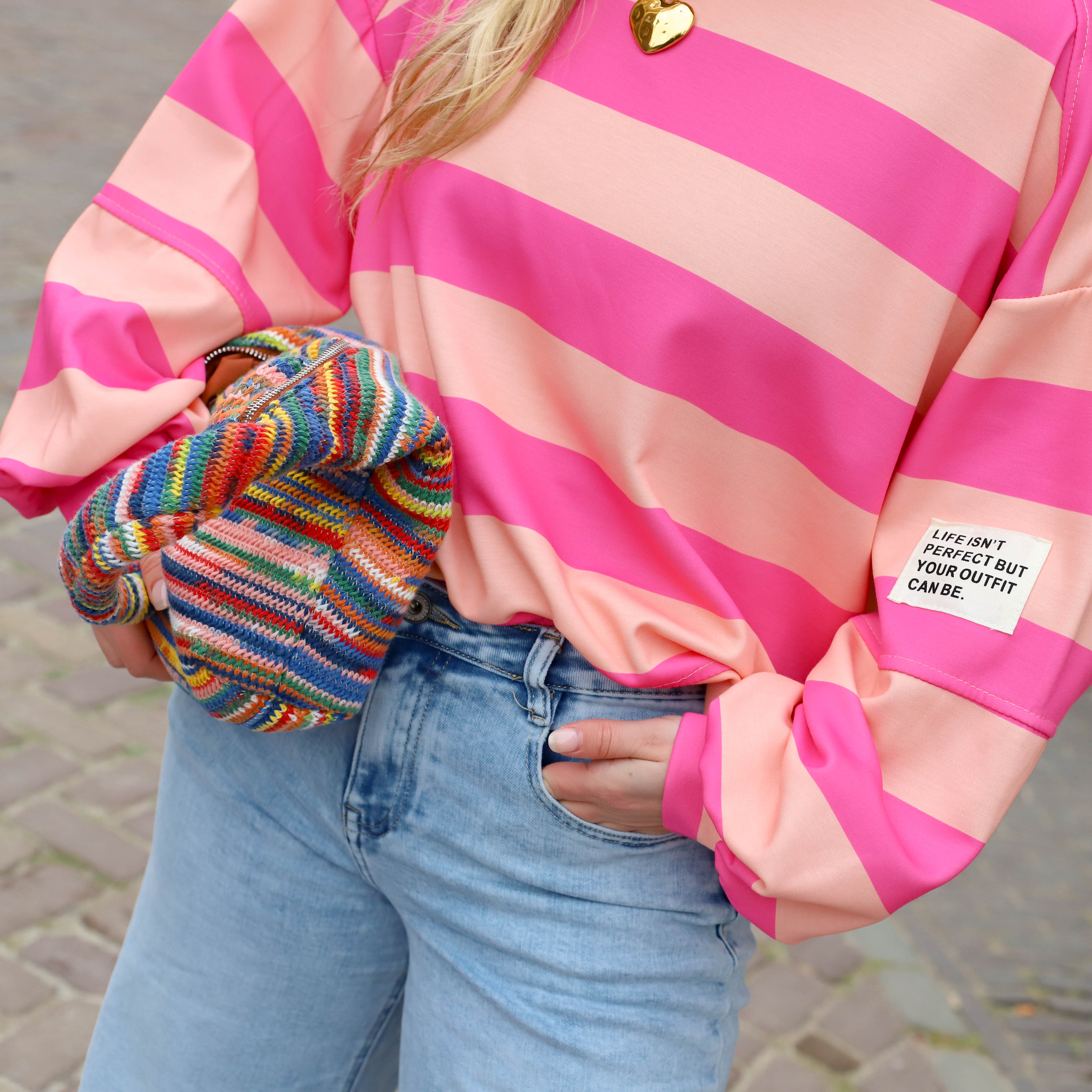 Top sweater streep lila oranje hart