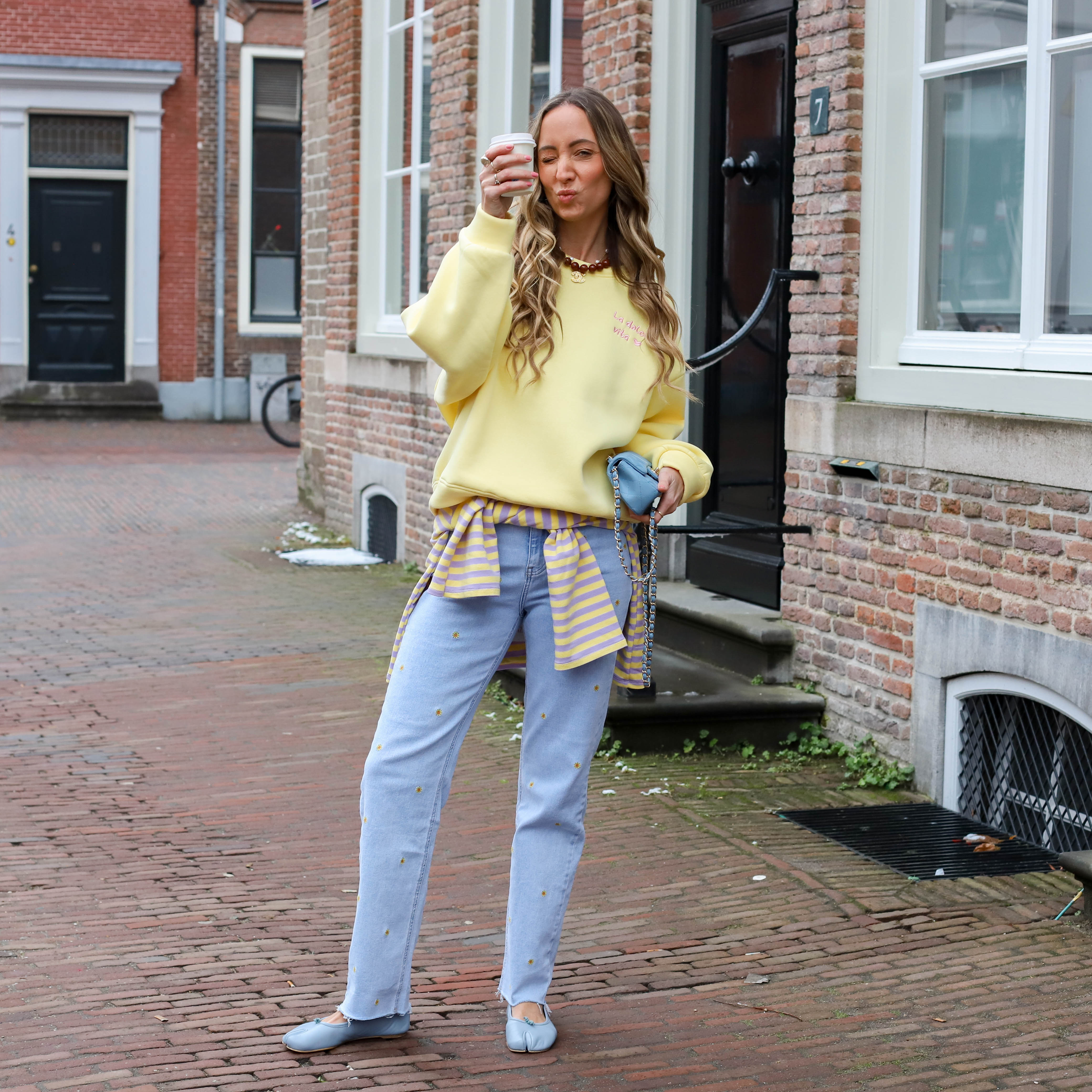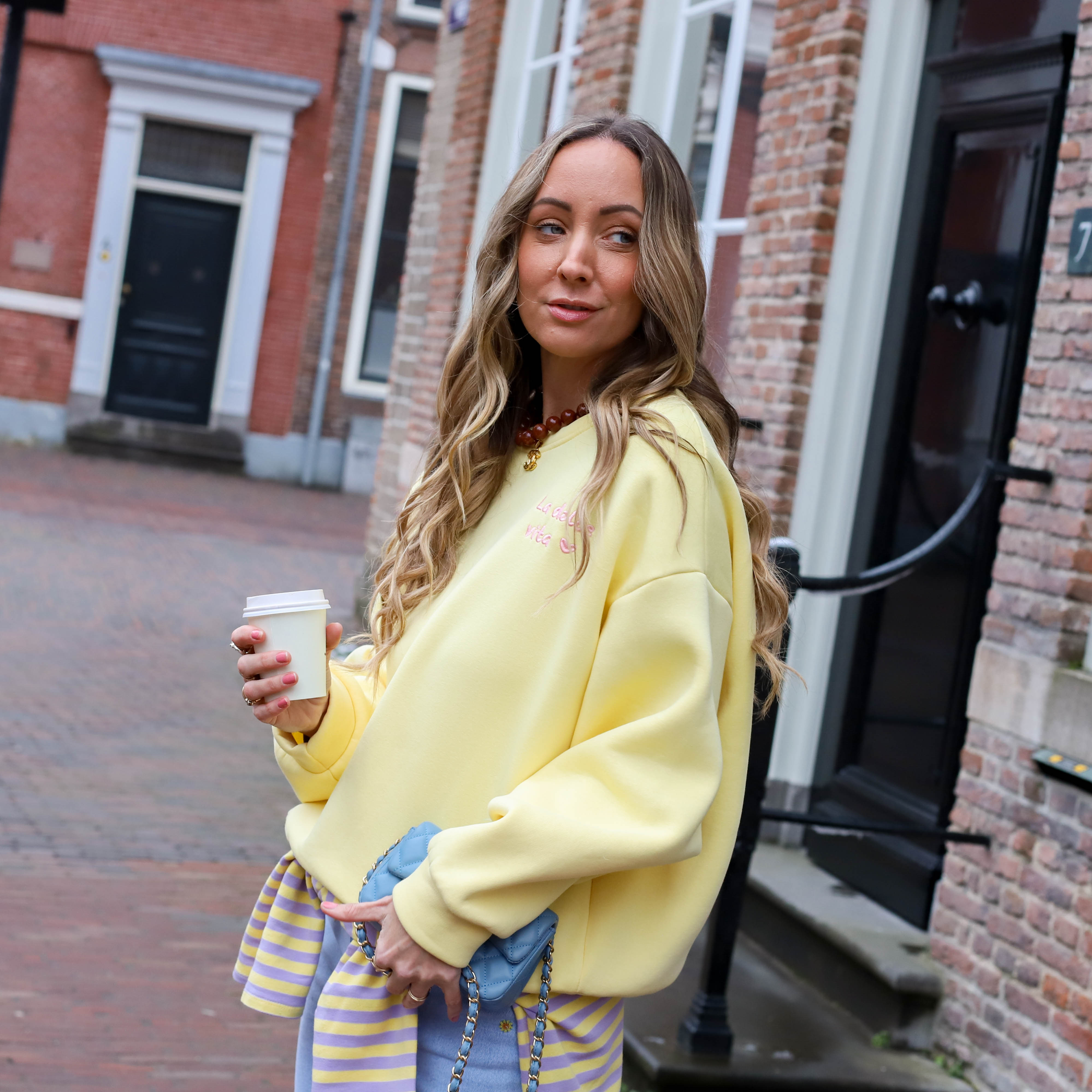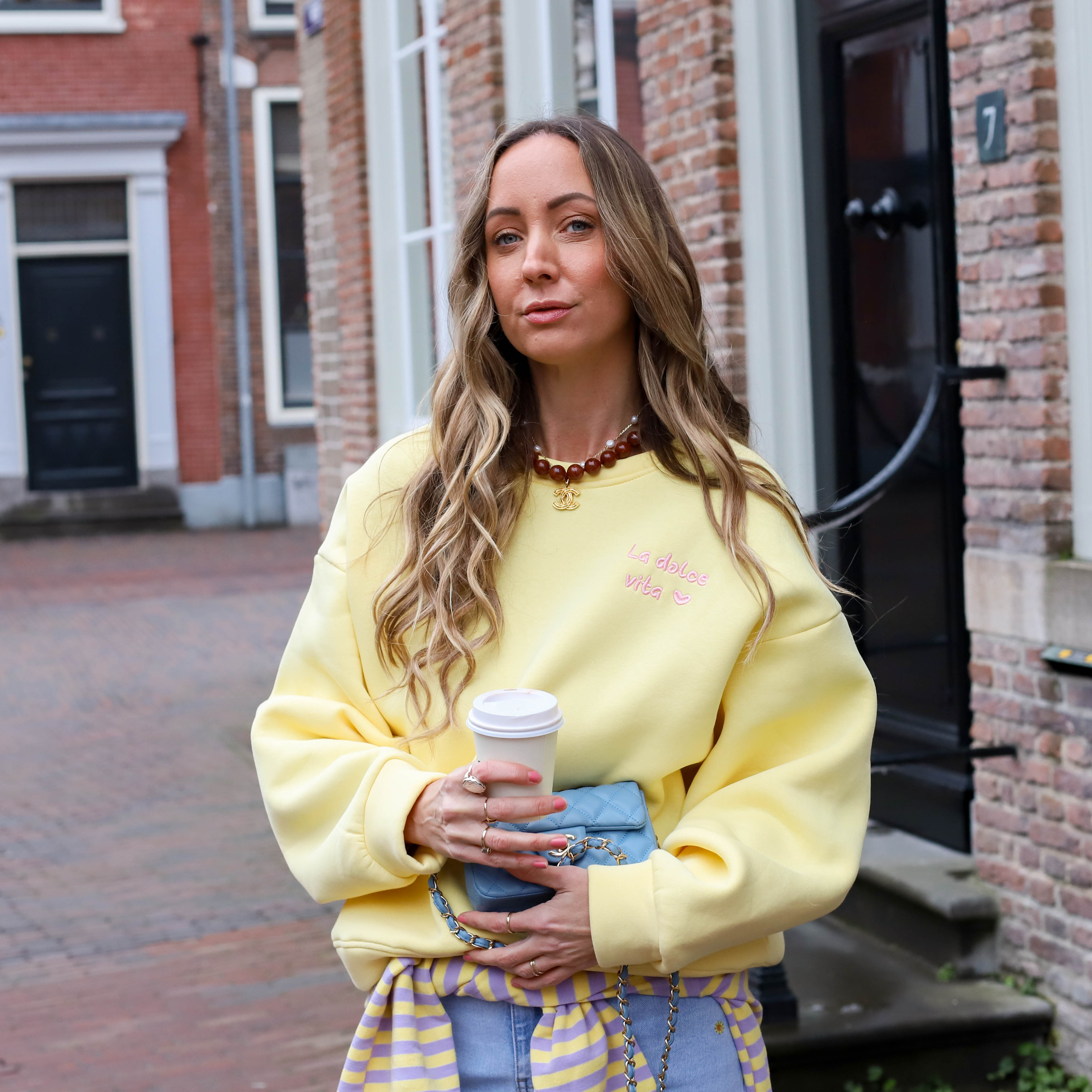Oversized sweater perfect geel blauw