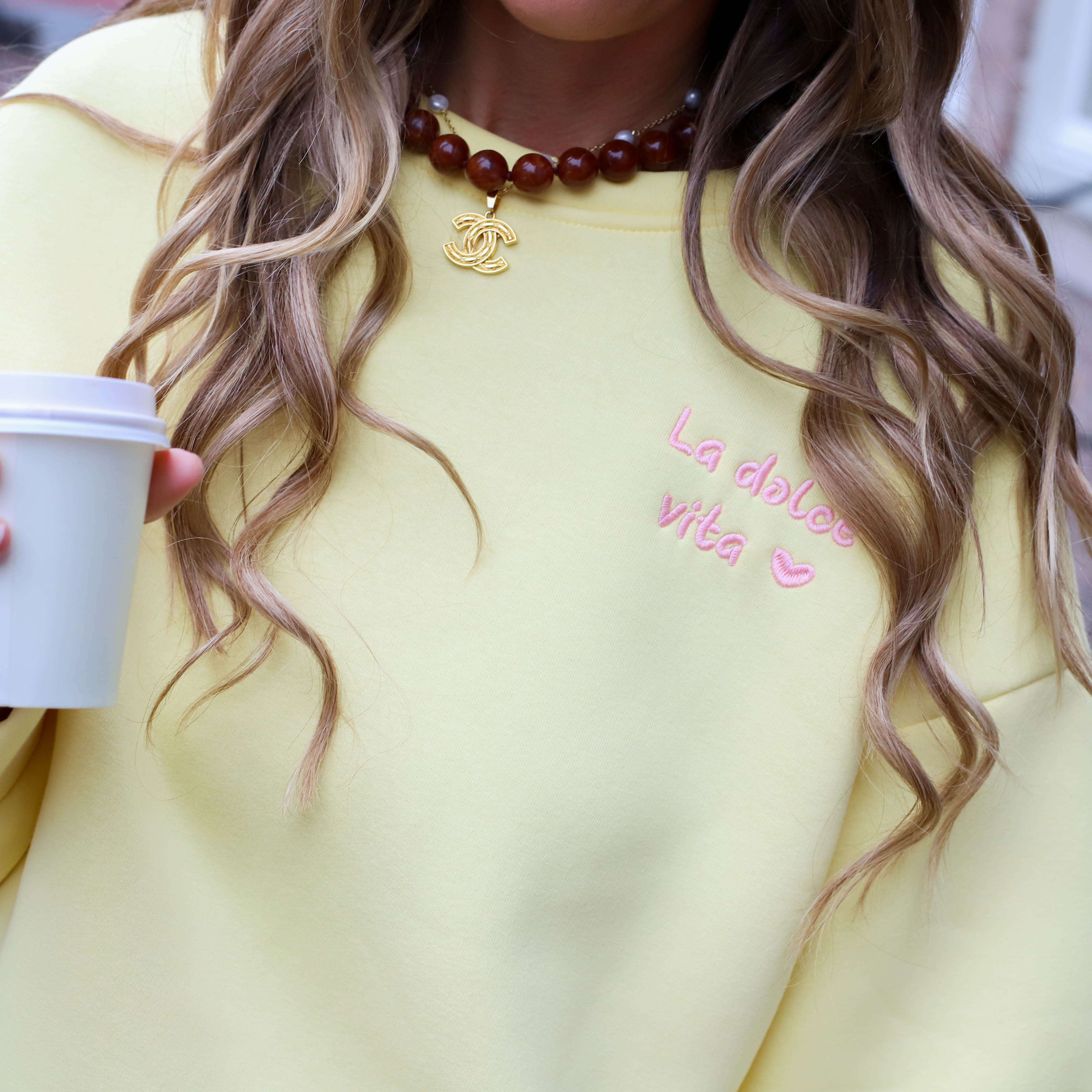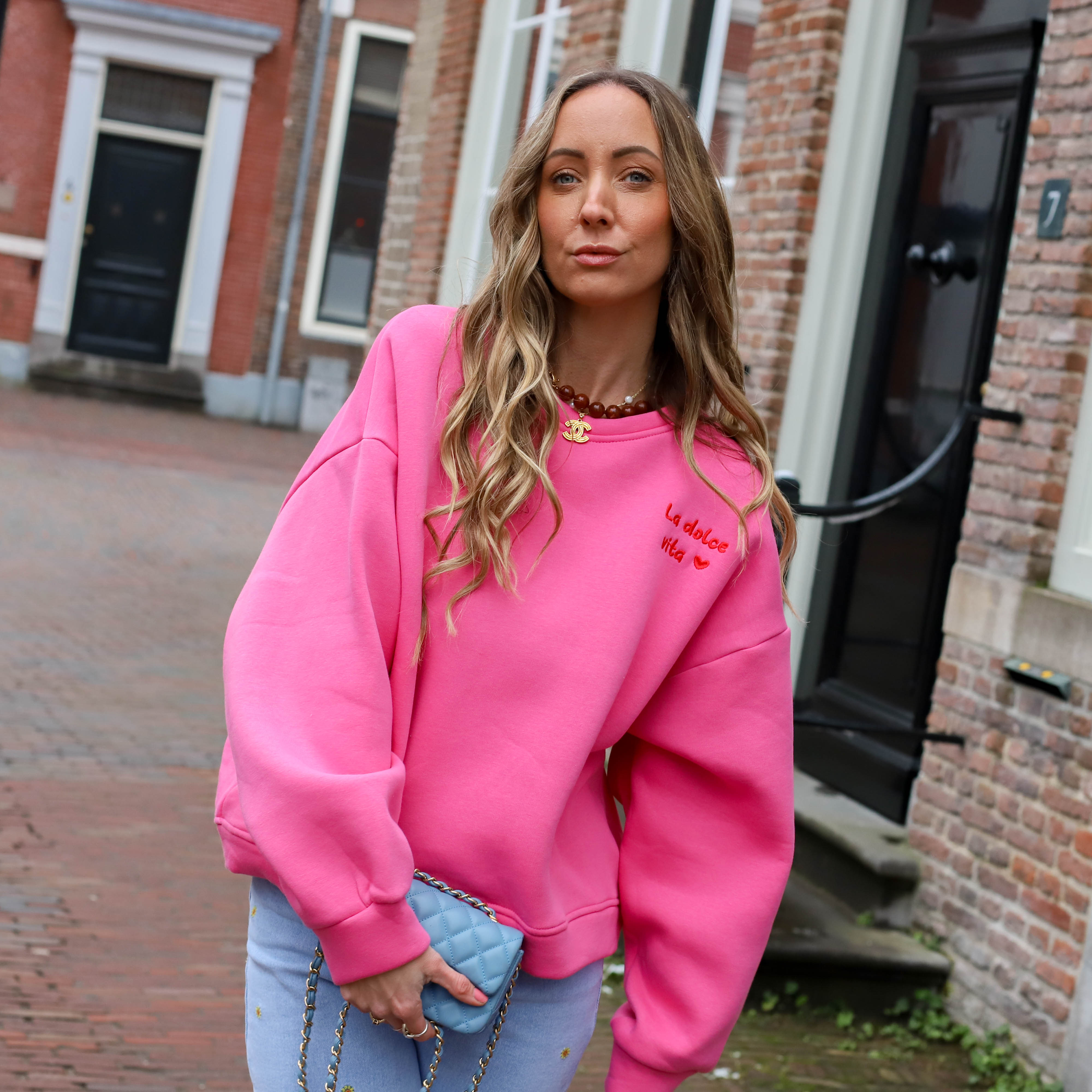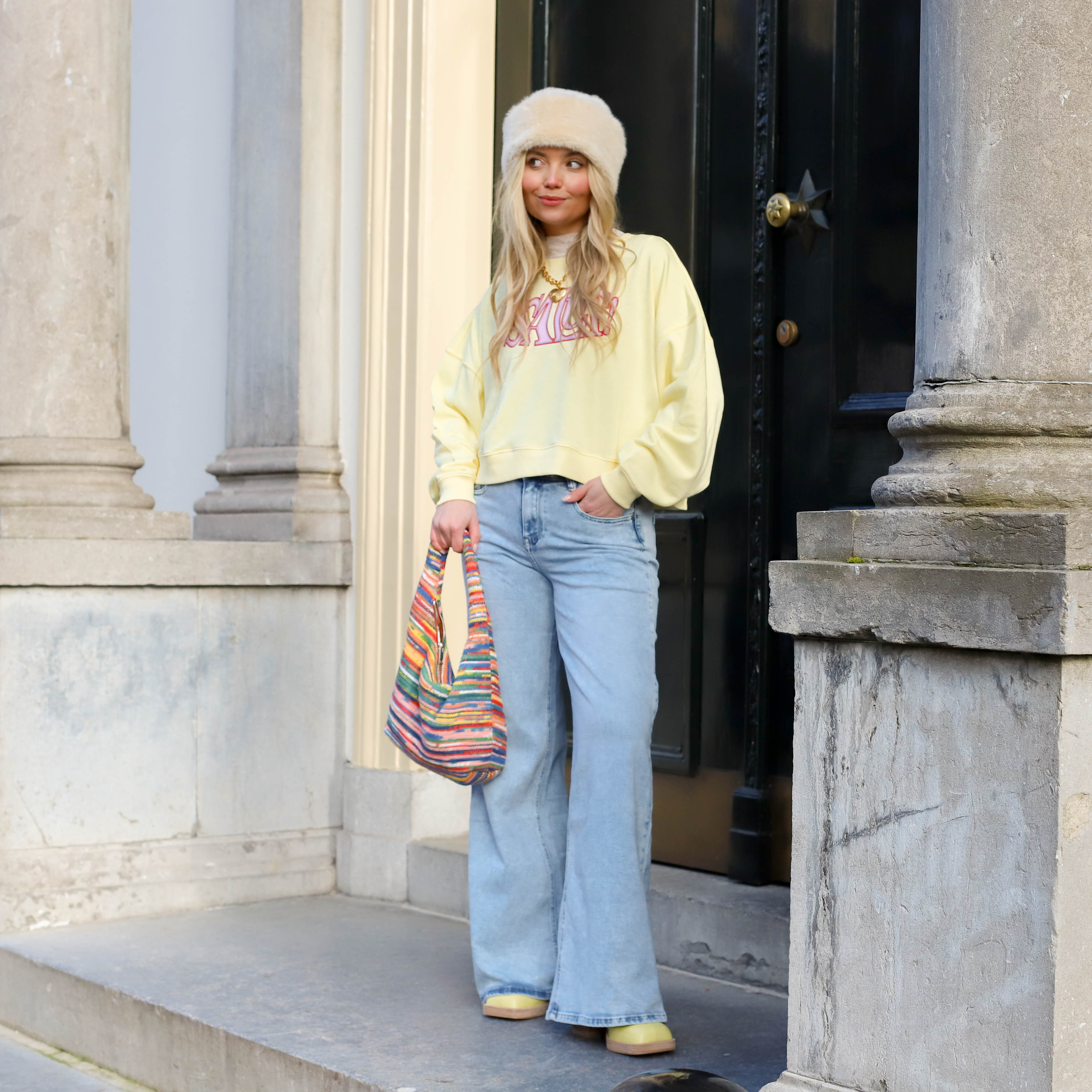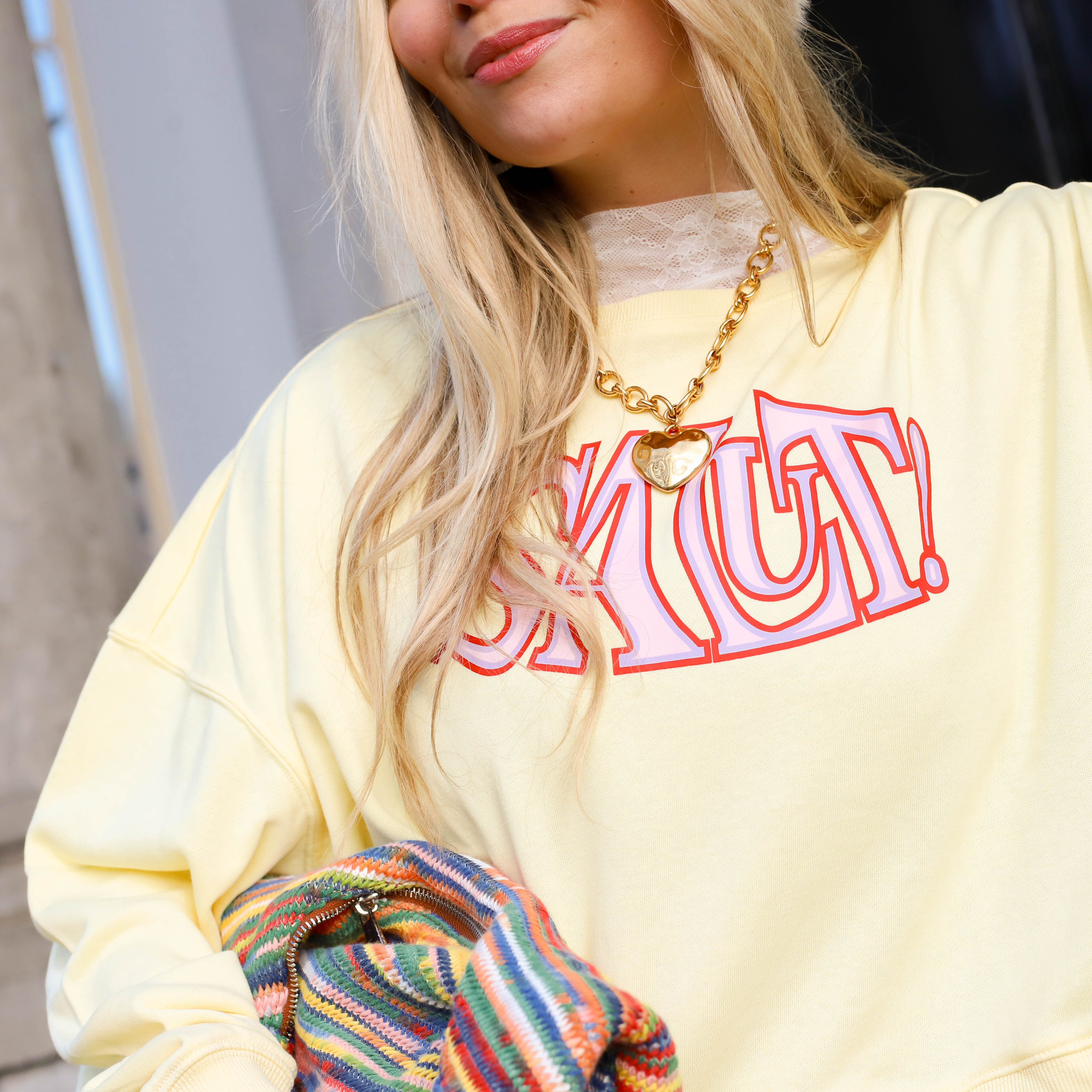 Oversized sweater geel roze la dolce vita