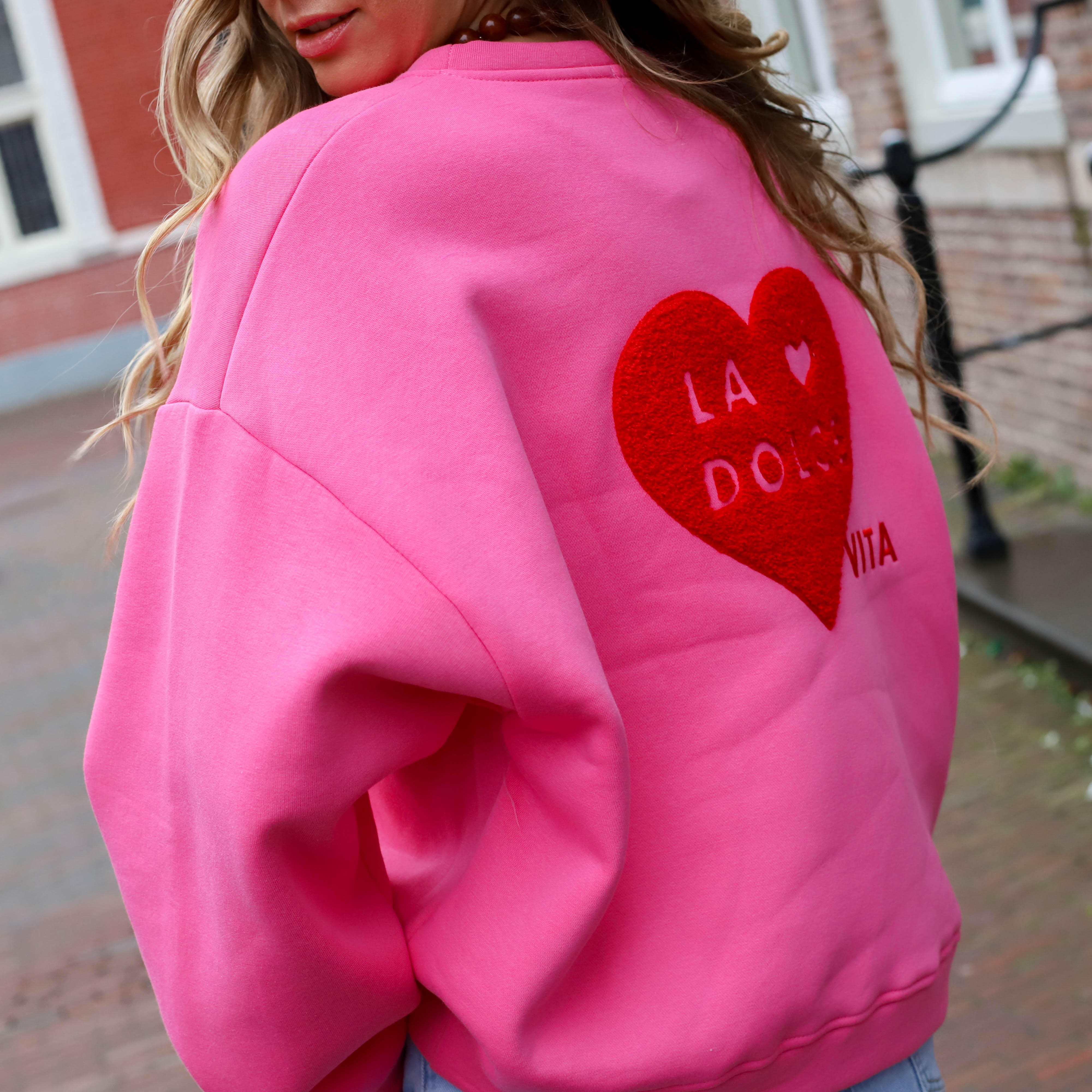 Oversized sweater roze rood a dolce vita