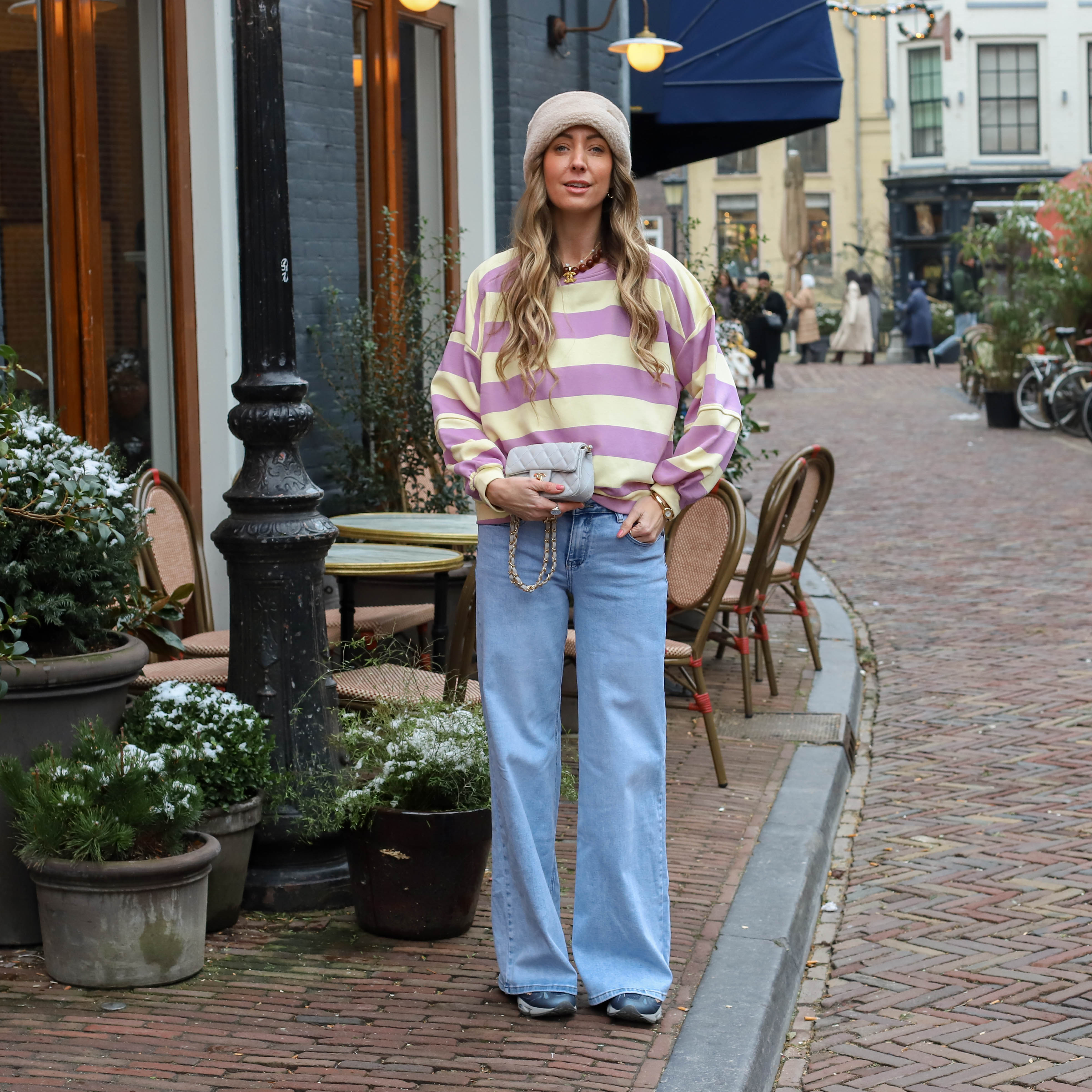 Oversized sweater lover streep blauw geel