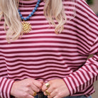 De Billy streep trui is een comfortabele en veelzijdige toevoeging aan je basisgarderobe. Deze trui heeft een klassiek, tijdloos streepdessin in een opvallende combinatie van diep bordeauxrood en zacht roze. De wijde, casual pasvorm met lange mouwen en een ronde hals zorgt voor een ontspannen en flatterende look. Dankzij de zachte katoenmix is deze trui heerlijk om te dragen. Combineer deze trui eenvoudig met een jeans of een leren broek voor een moeiteloos chique uitstraling.