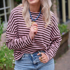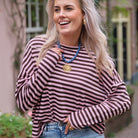 De Billy streep trui is een comfortabele en veelzijdige toevoeging aan je basisgarderobe. Deze trui heeft een klassiek, tijdloos streepdessin in een opvallende combinatie van diep bruin en  roze. De wijde, casual pasvorm met lange mouwen en een ronde hals zorgt voor een ontspannen en flatterende look. Dankzij de zachte katoenmix is deze trui heerlijk om te dragen. Combineer deze trui eenvoudig met een jeans of een leren broek voor een moeiteloos chique uitstraling.