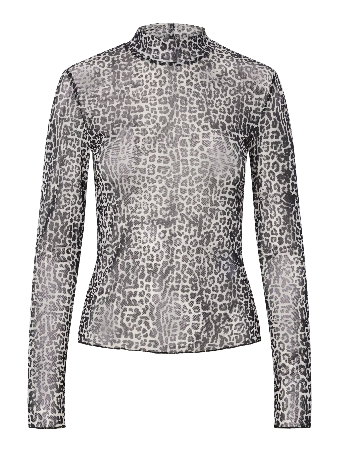 Deze pc Jeshi Ls high neck top is een gedurfde en trendy layering essential. De top is gemaakt van een semi-transparante stof met een all-over luipaardprint in zwart en grijs, wat zorgt voor een stoere, maar verfijnde look. De hoge hals en de strakke pasvorm maken deze top perfect om onder een blazer, jurk of T-shirt te dragen.