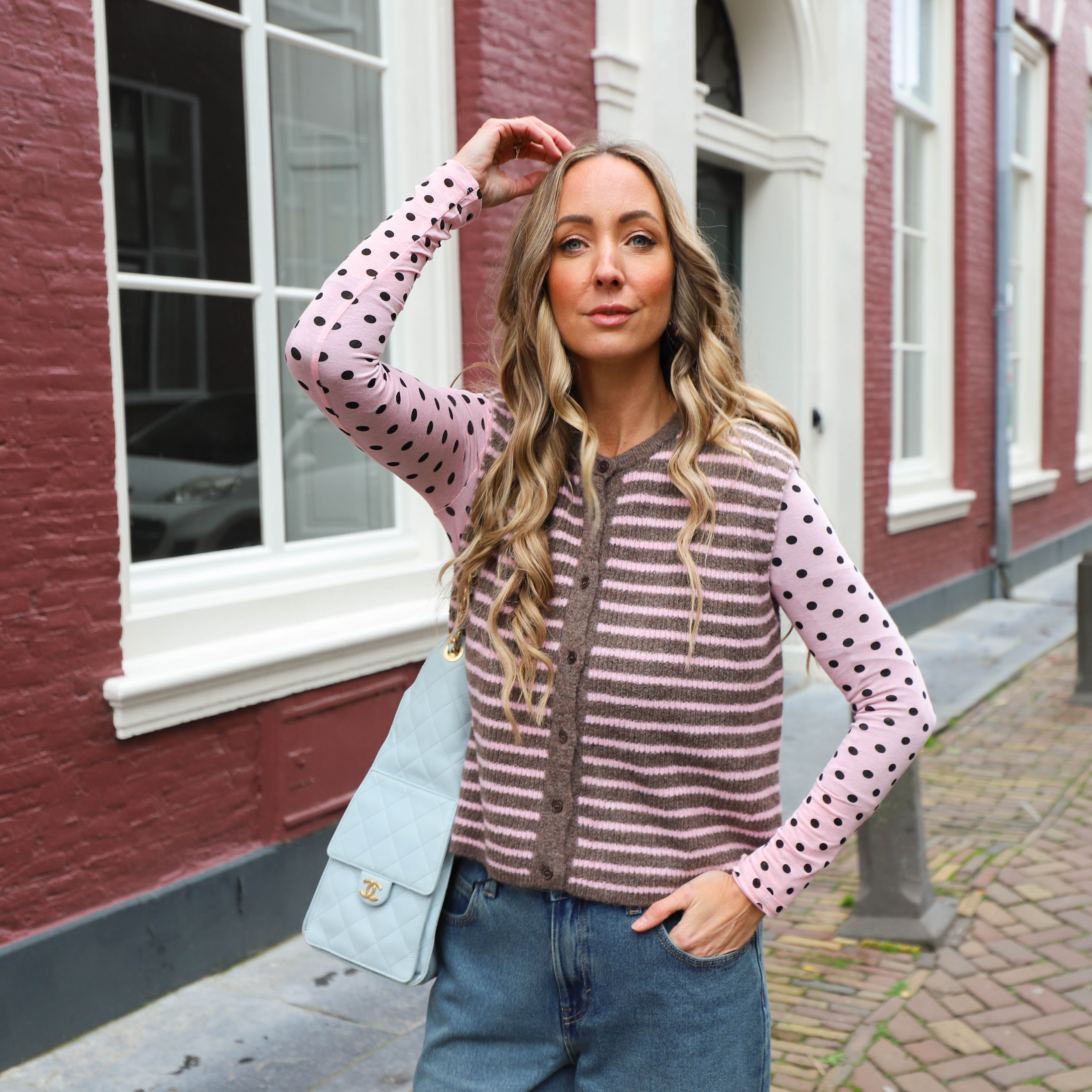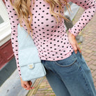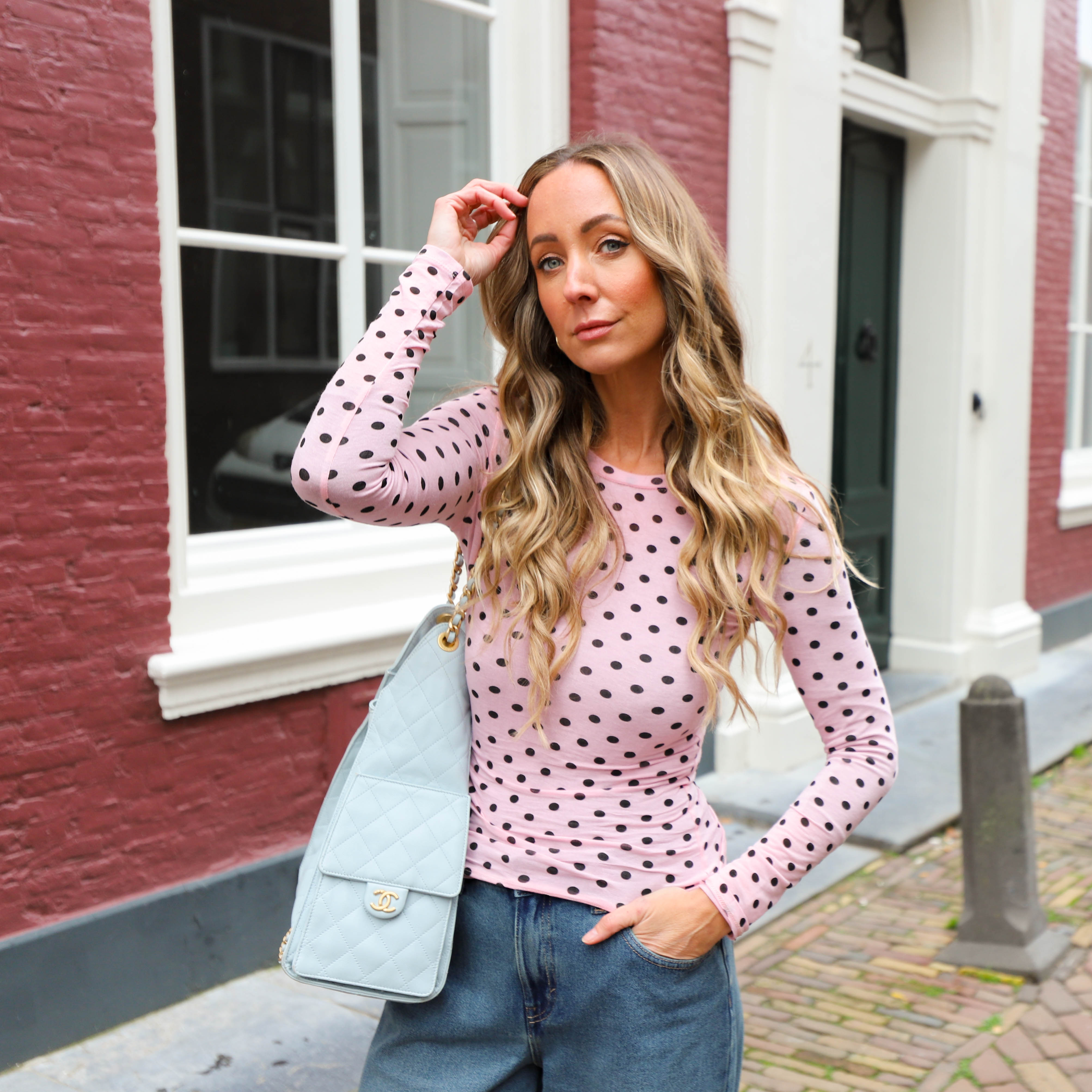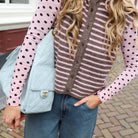 Deze Stippen Top is een elegante en veelzijdige layering top, perfect voor een subtiele, vrouwelijke look. De top is uitgevoerd in een roze kleur met een all-over patroon van kleine, contrasterende donkere stippen. De stof is semi-transparant en valt soepel, en de combinatie van een ronde hals en lange mouwen maakt deze top ideaal om onder andere kledingstukken te dragen, of met een basic hemdje eronder.