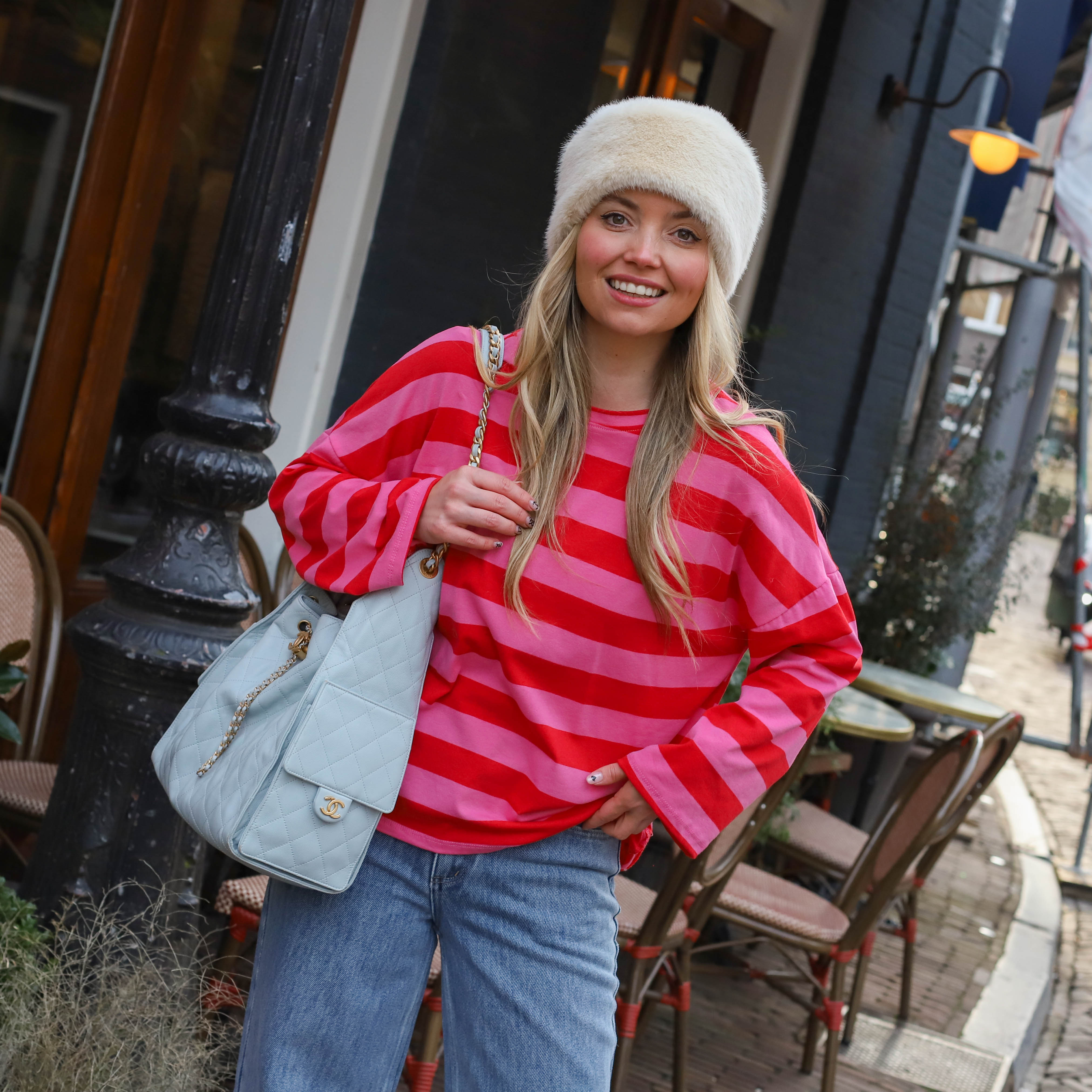 Amour top blauw rood streep