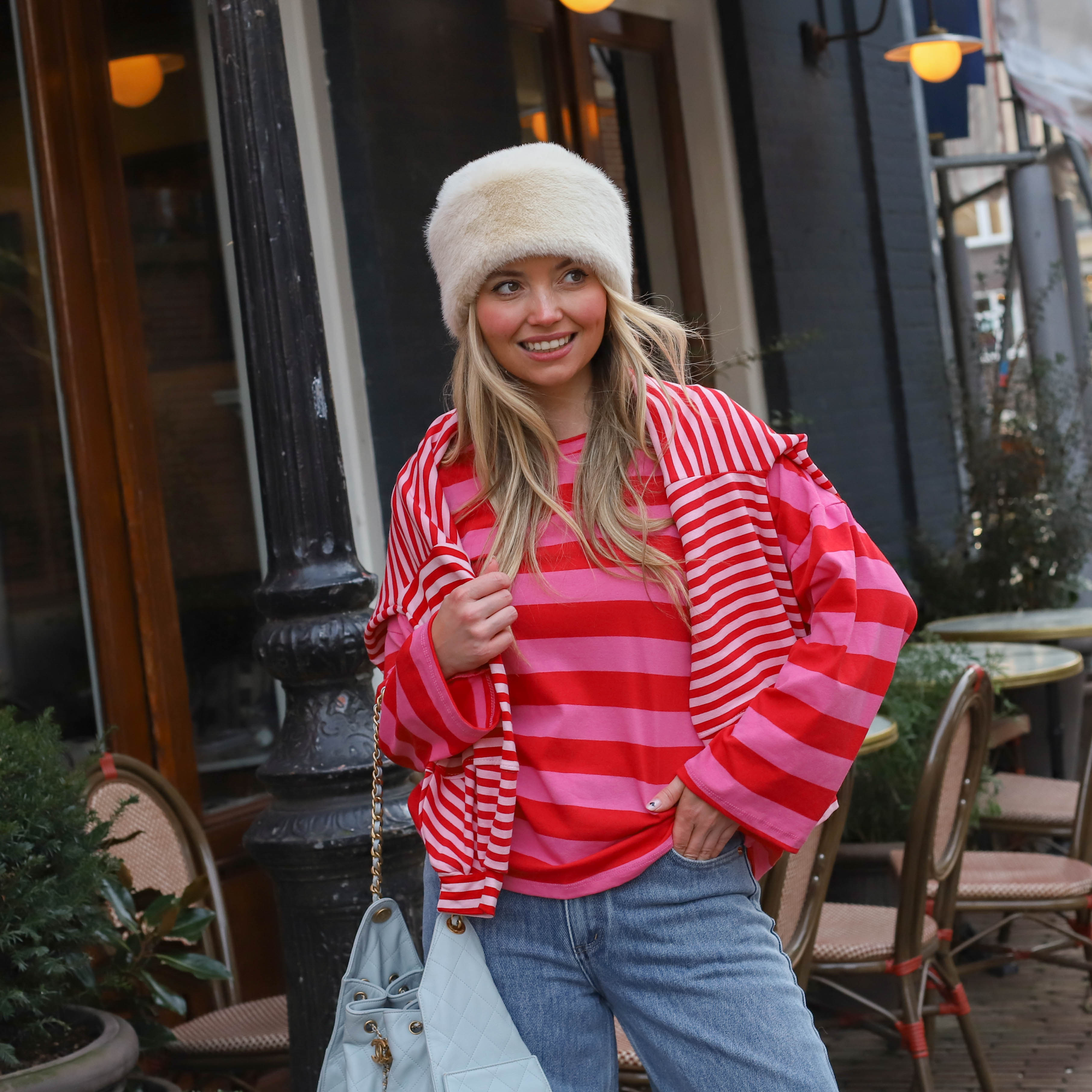 Amour top roze rood streep