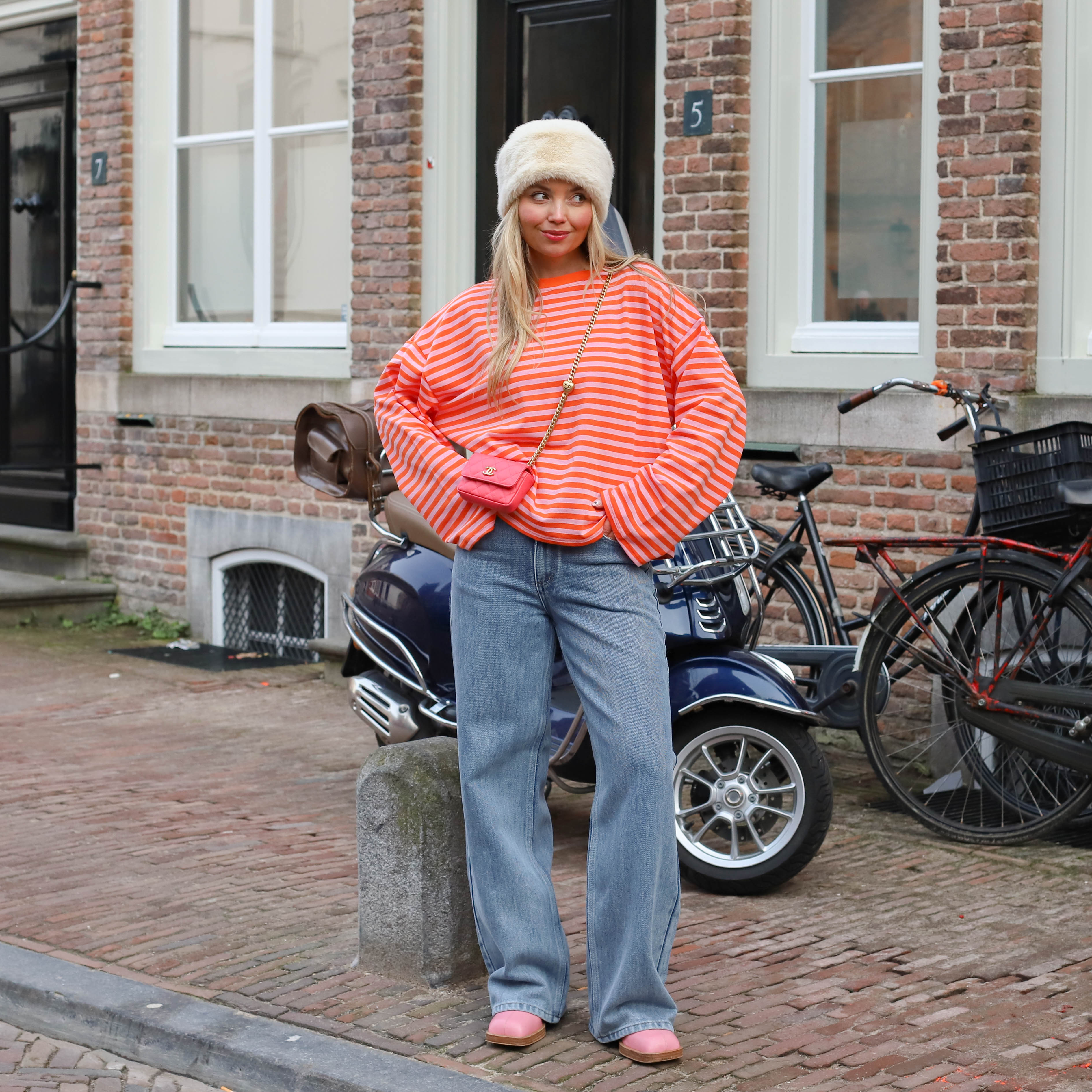 Lieke streep top peach oranje