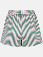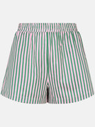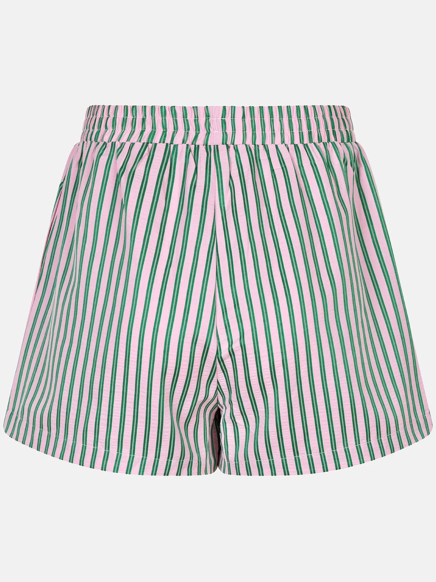 Short Belle is een zomerse short uitgevoerd in een leuke gestreepte stof. De short is afgewerkt met een elastische tailleband en blinde steekzakken aan de zijkant.