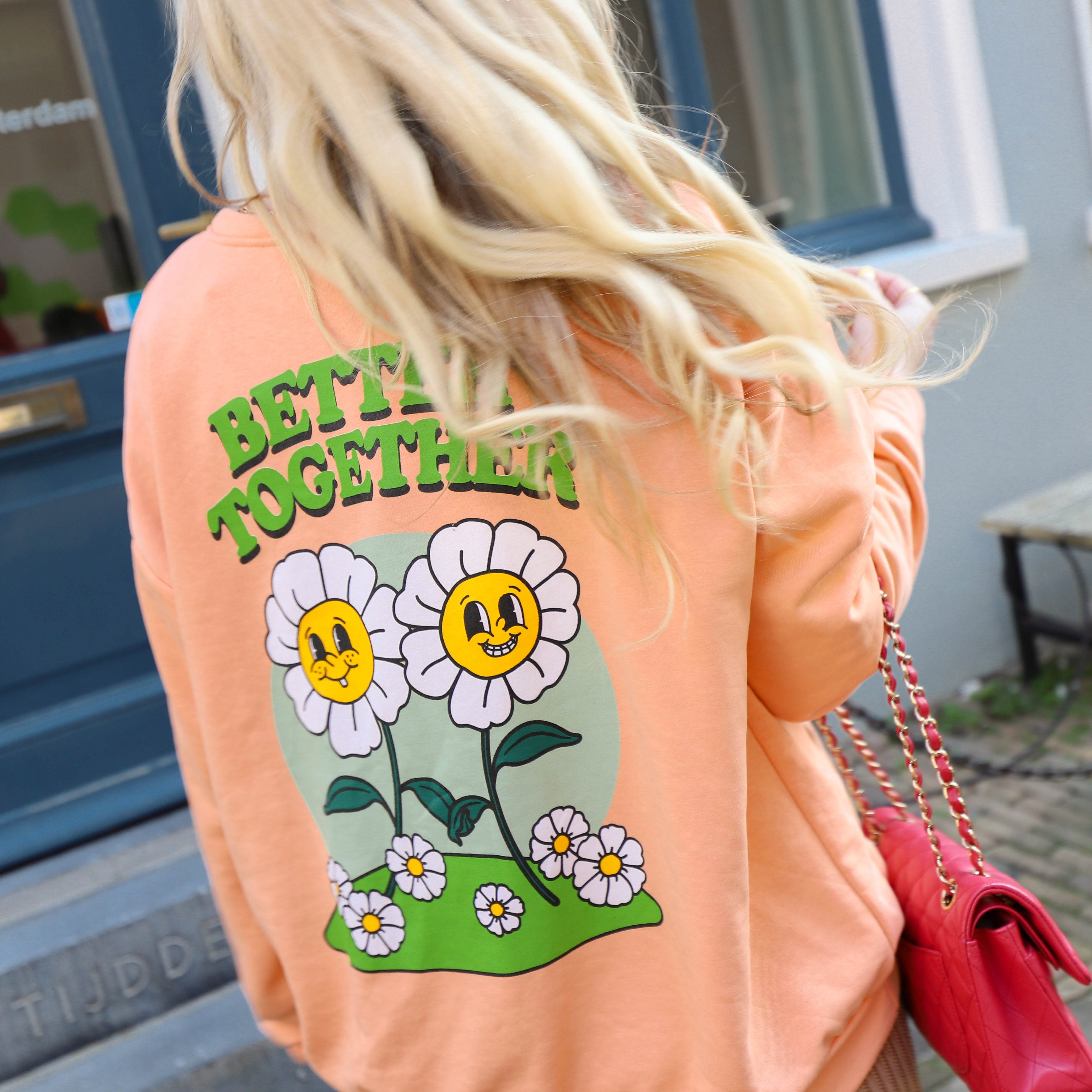 Deze trendy, peach sweater met bloemenprint is een must-have voor elke garderobe. De trui heeft een unieke, romantische uitstraling met de bloemenprint, perfect voor een casual en toch stijlvolle look. De comfortabele pasvorm en zachte stof maken het shirt ideaal voor dagelijks gebruik.