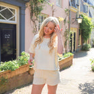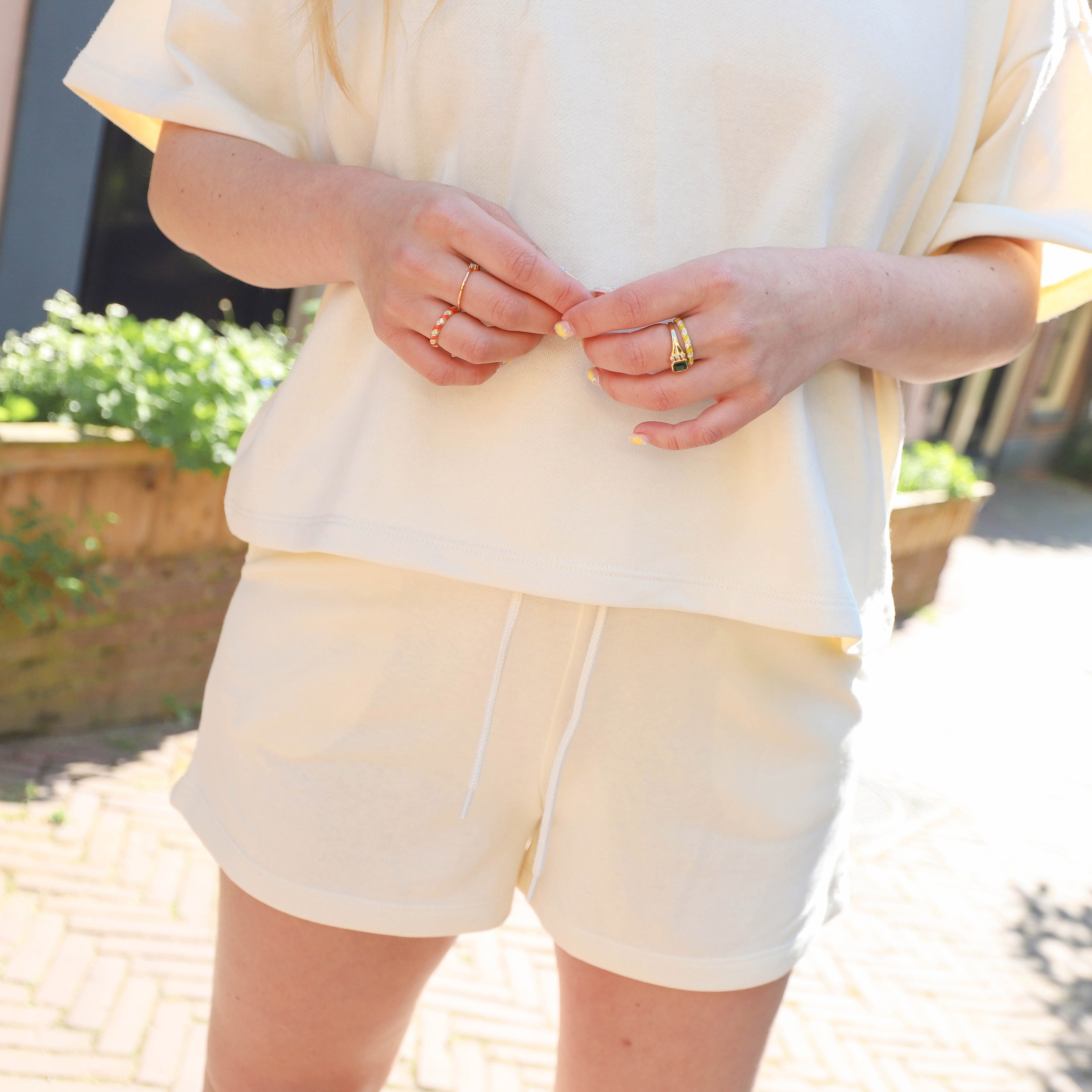 Heerlijke short in sweatstof in een lichte kleur. Zit heerlijk en is overal mee te combineren. Leuk met het bijpassende topje!