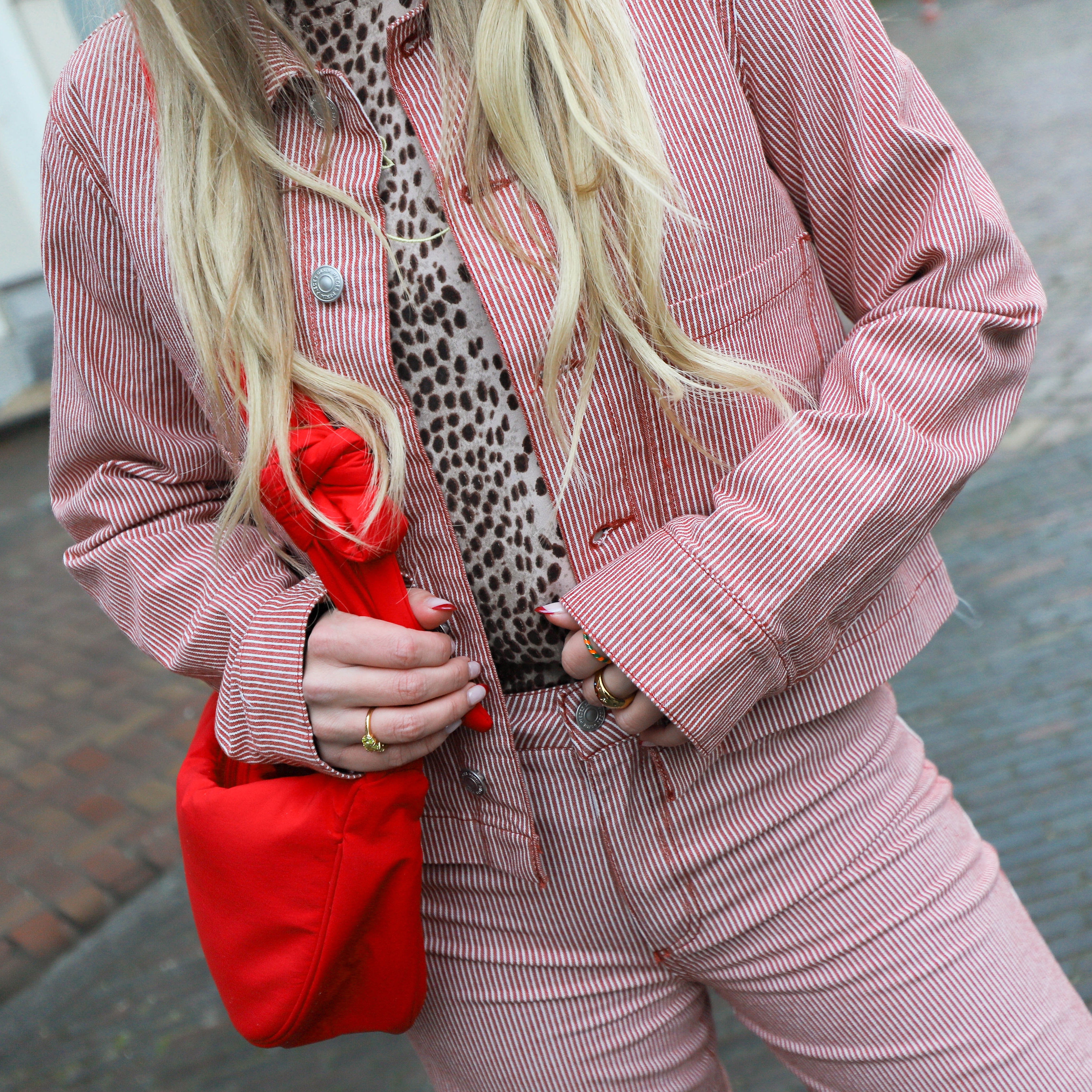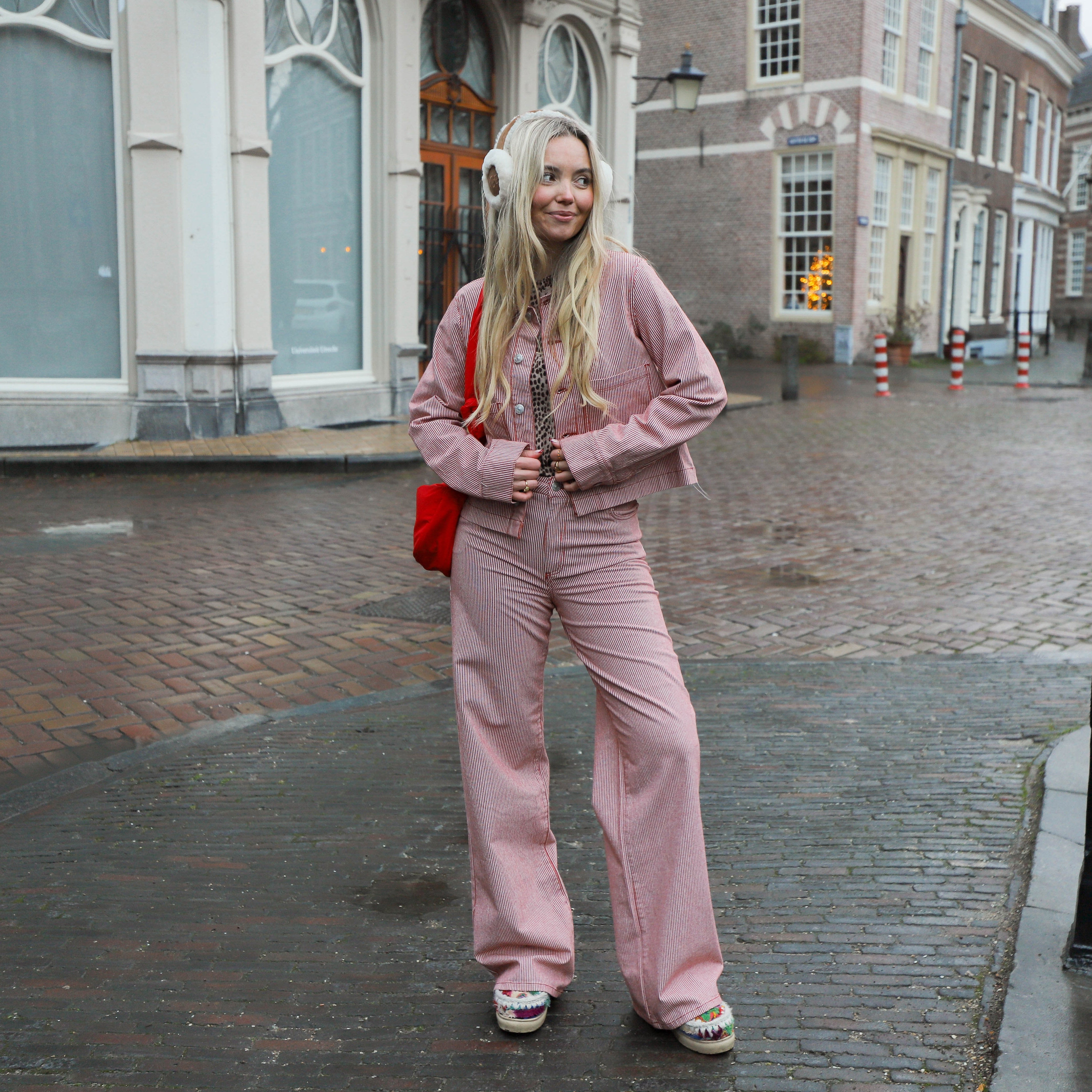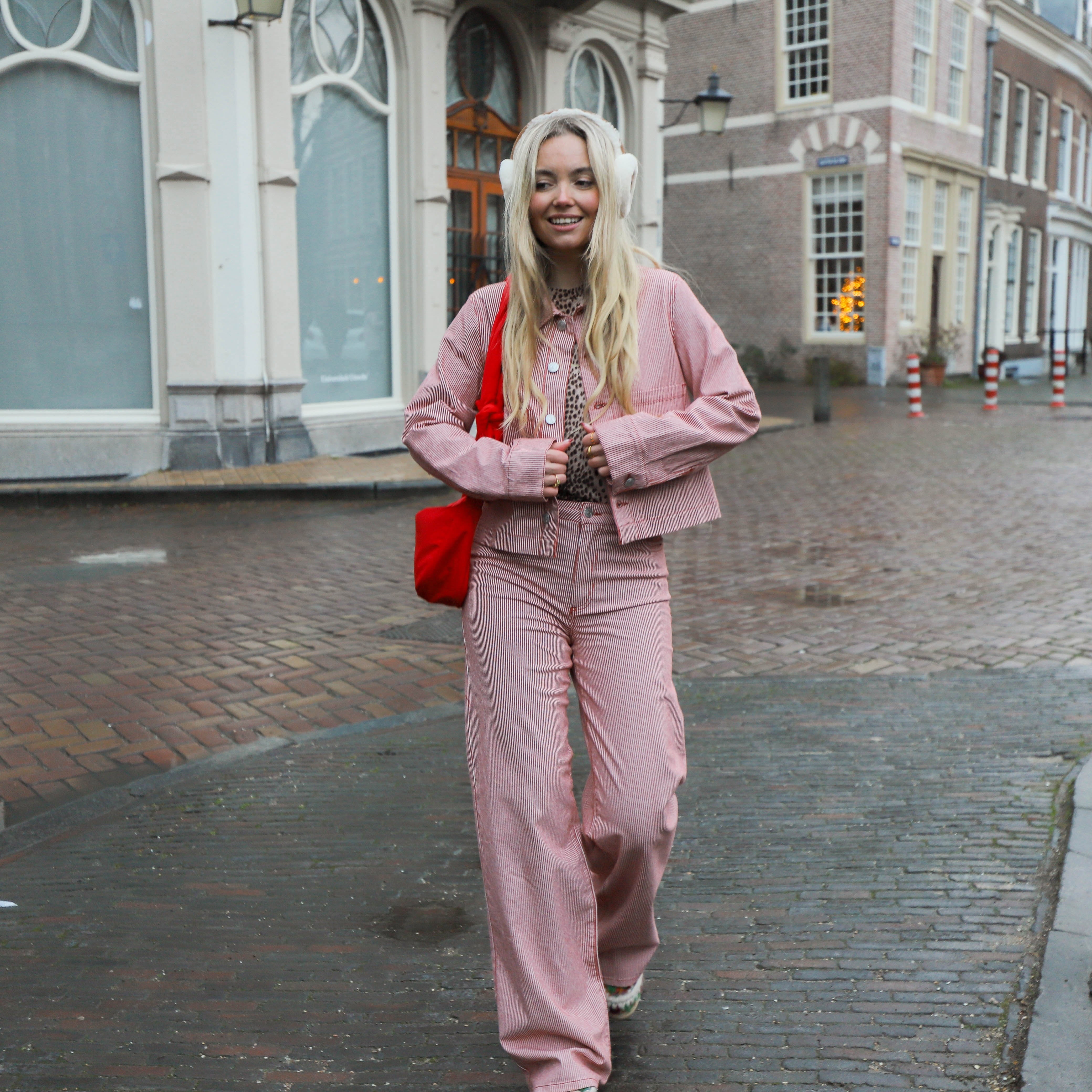 Deze "pcbillo denim jacket" is een trendy en stoere jas met een lichtrood gestreept denim look.