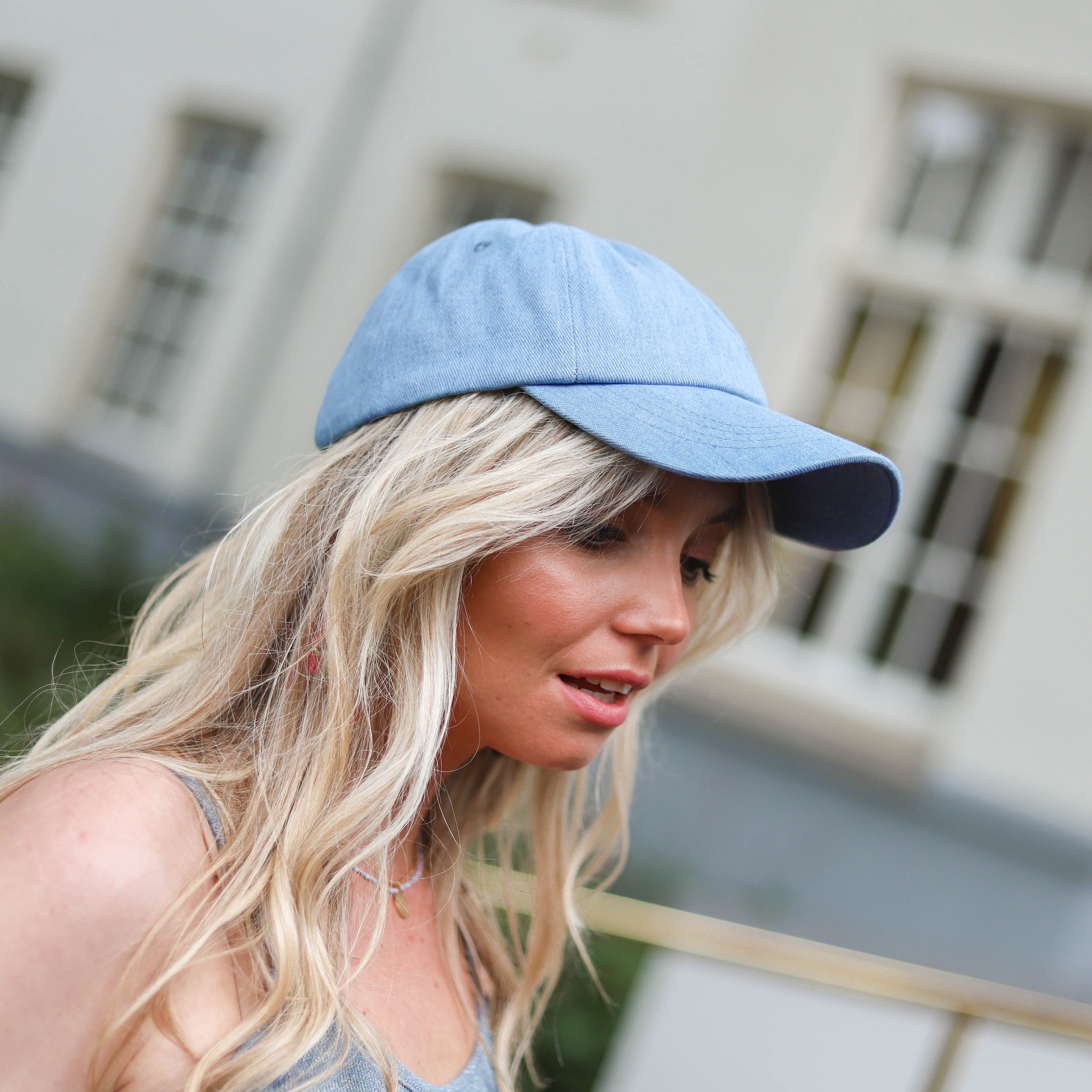Mooie lichtblauwe pet. Geeft elke outfit wat extra's!