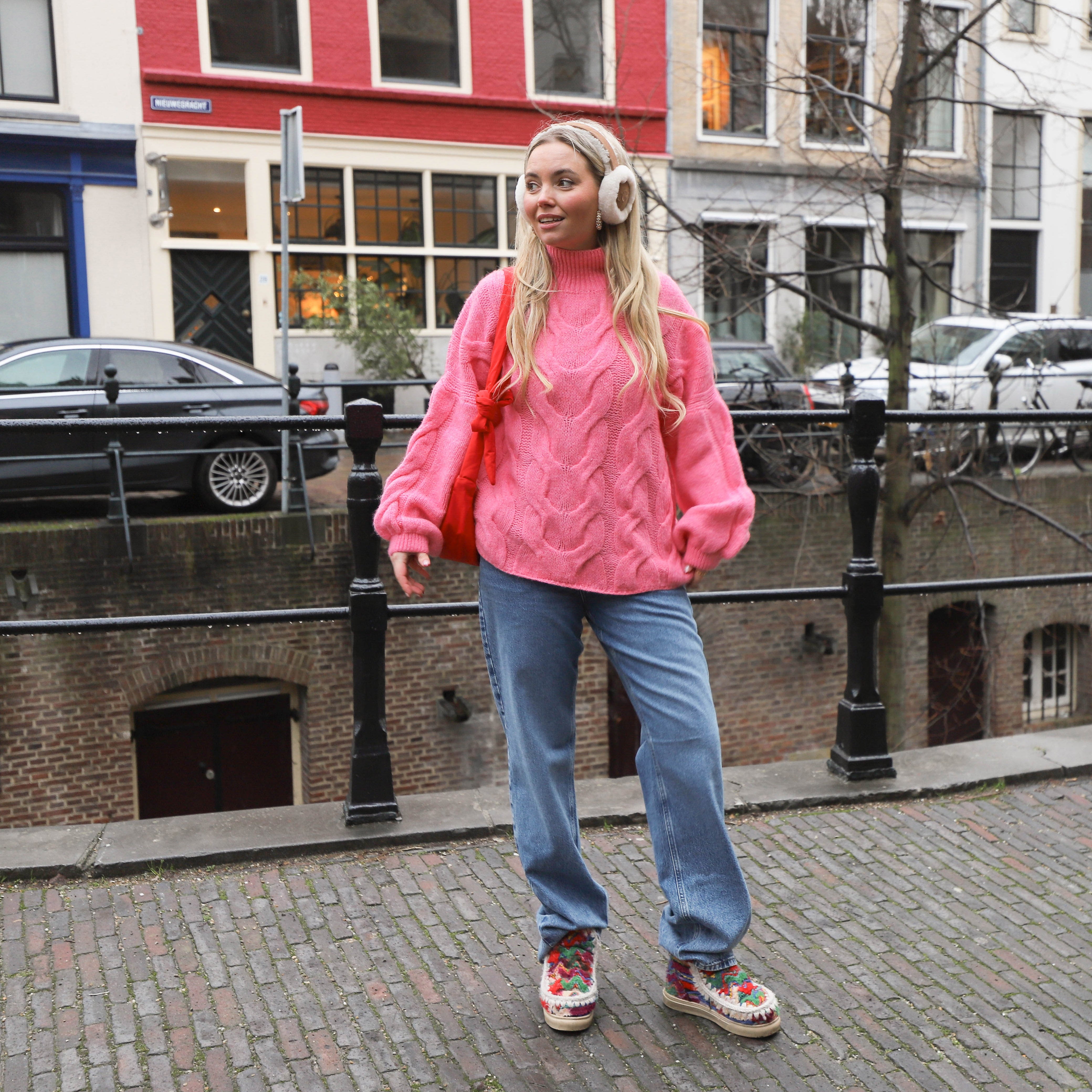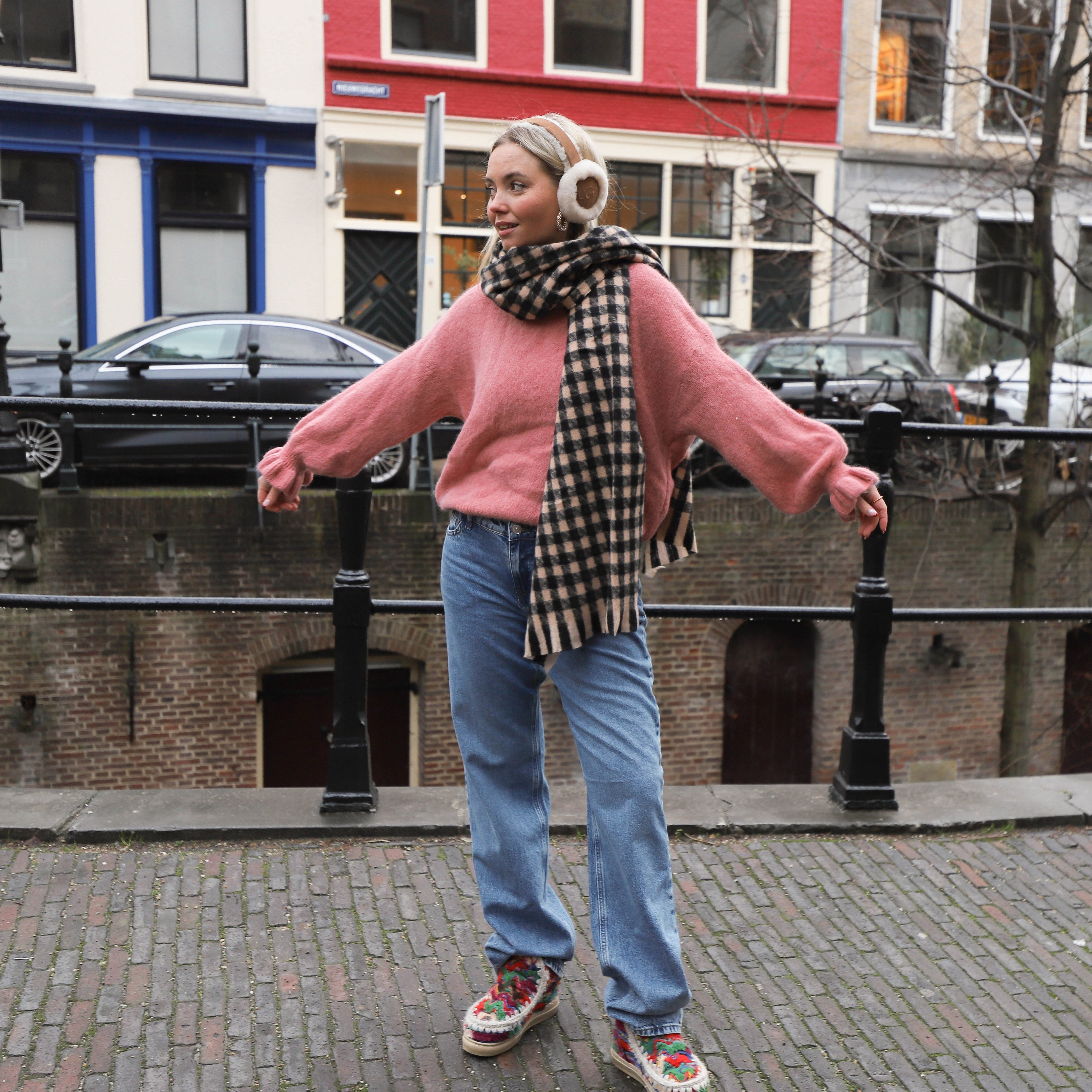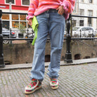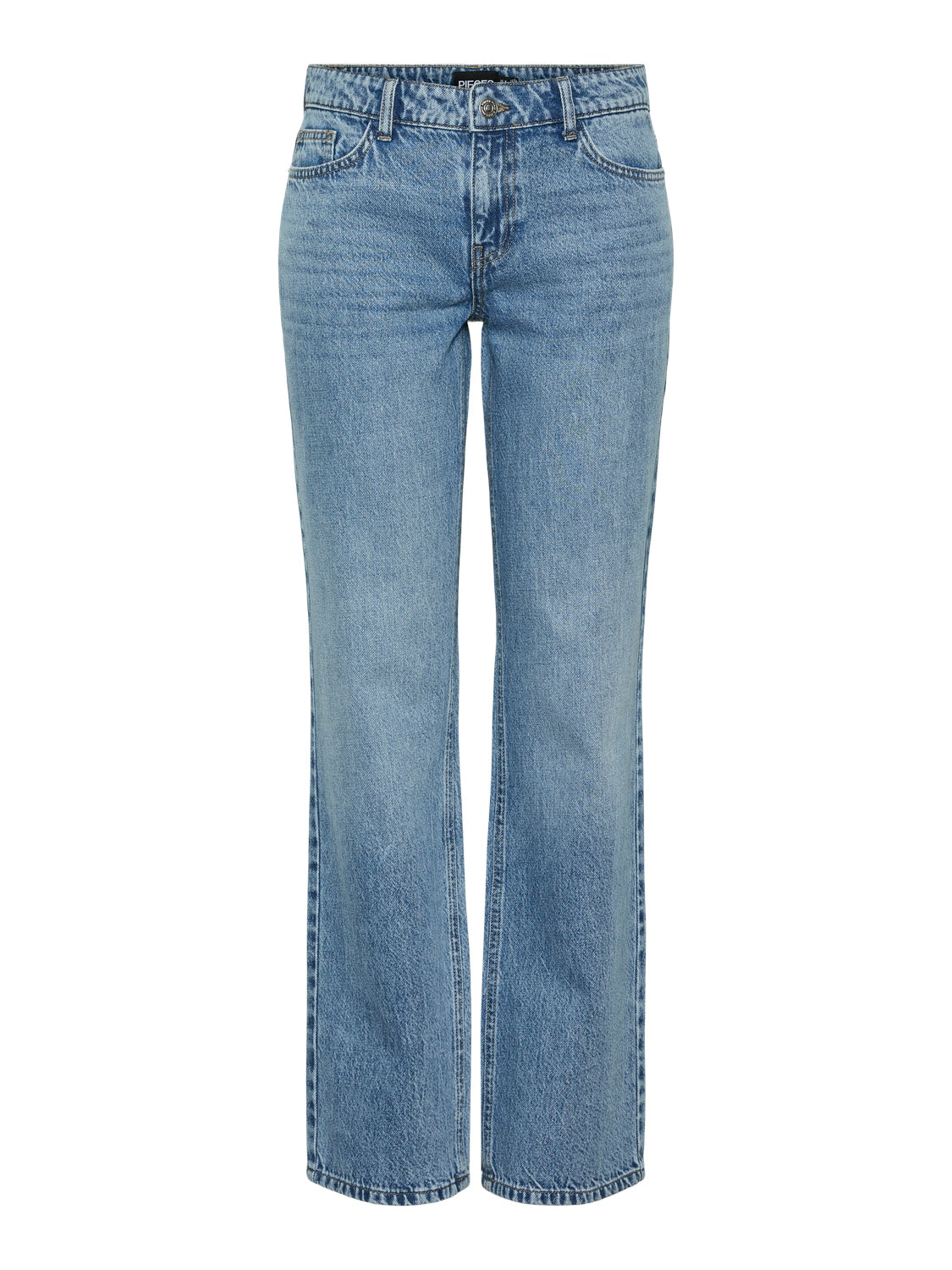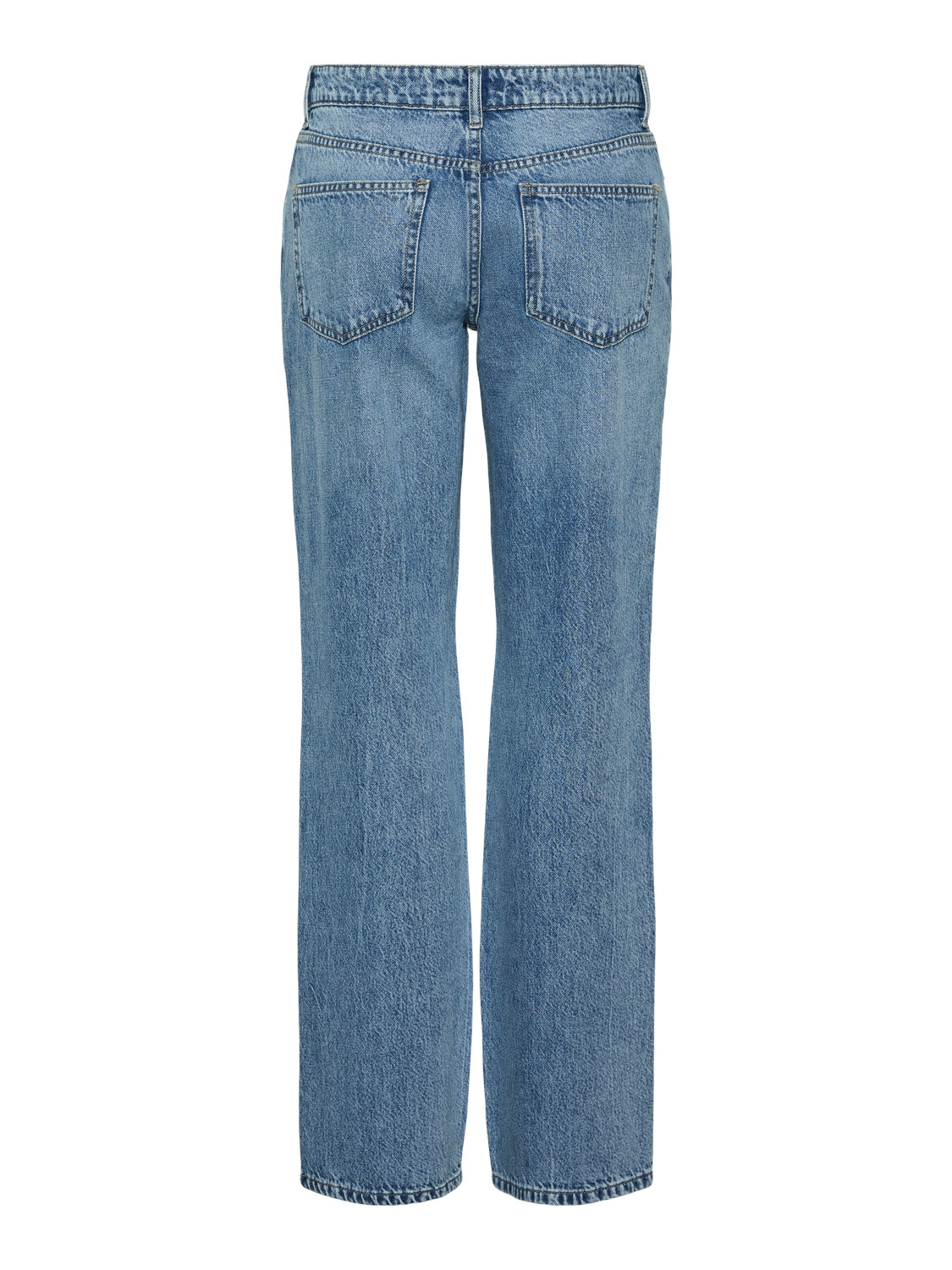 Mooie straight jeans in een lichte kleur. De broek heeft rechte pijpen en een hoge taille. Combineer deze broek met een trui of vest.