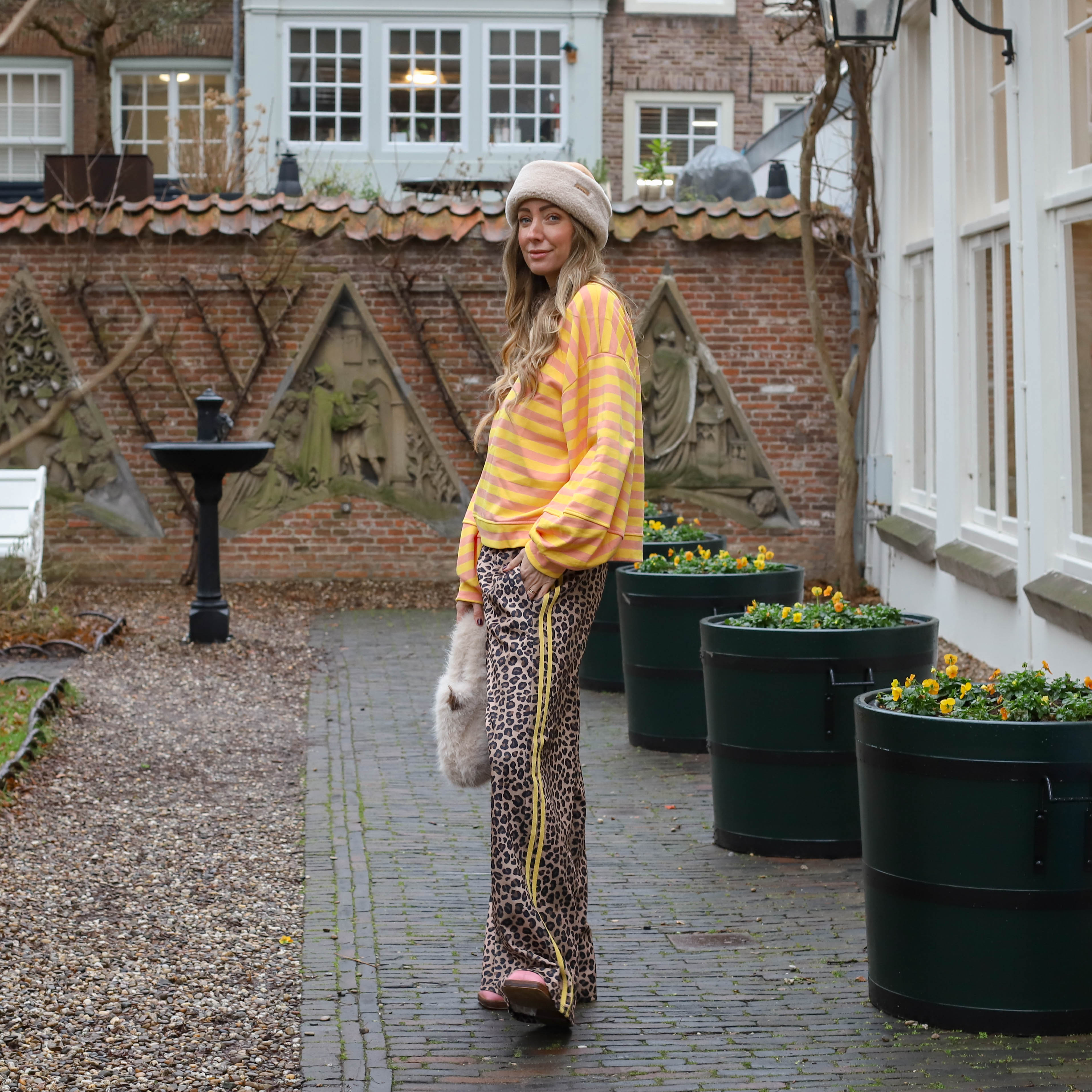 Daisy streep sweater geel lichtroze
