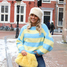 Deze Gestreepte Gebreide Trui is een zachte en opvallende toevoeging aan je garderobe, perfect om kleur en een knusse textuur te combineren. De trui is uitgevoerd in brede, horizontale banen in vrolijke blauwe en zachtgele tinten. Met zijn grove breisel, ronde hals en extra wijde pasvorm is dit de ideale oversized trui voor een comfortabele en stijlvolle look.
