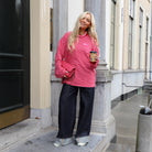De top heeft een ruime, oversized pasvorm, een ronde hals en lange mouwen. Een klein patch-detail op de borst zorgt voor een subtiel accent.