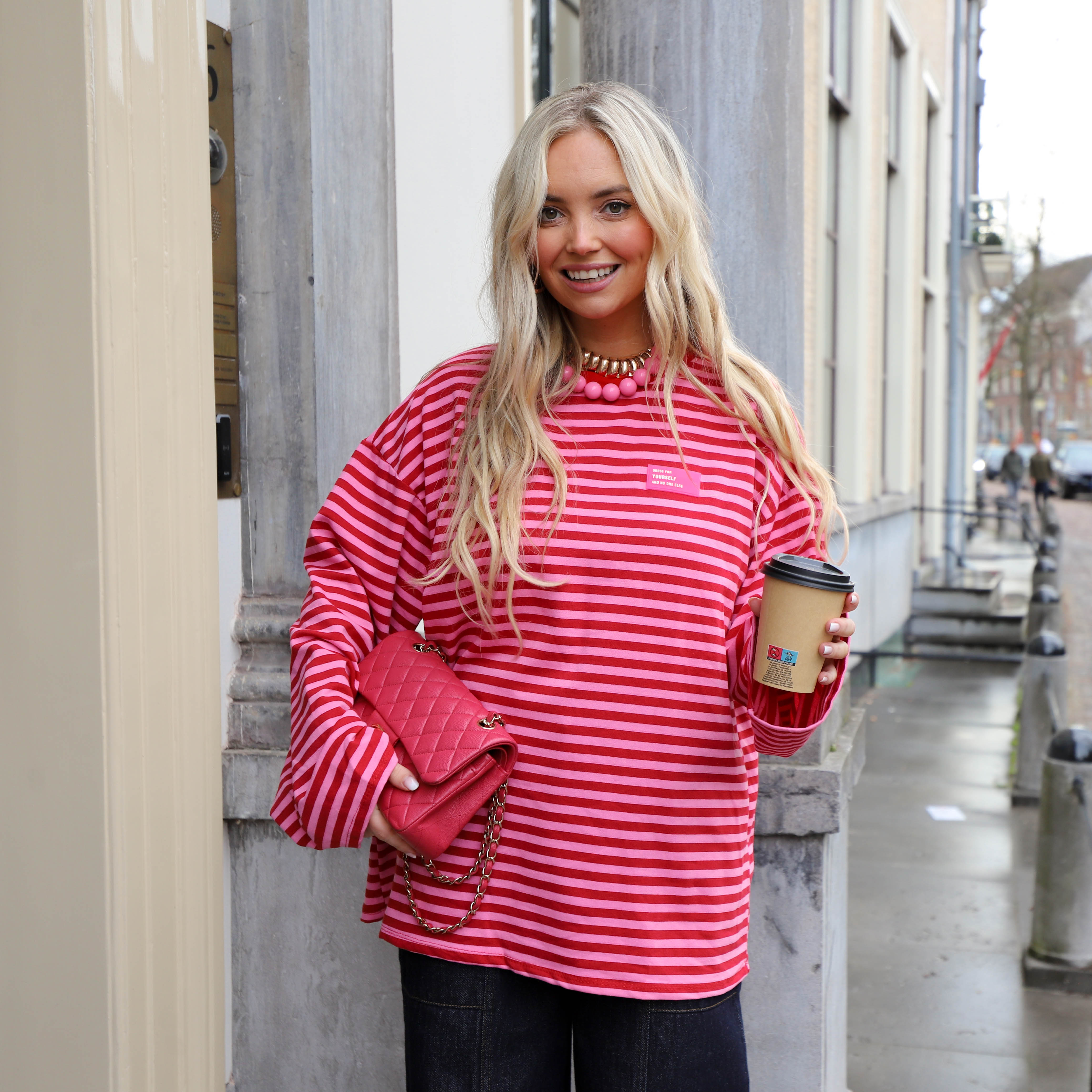 Deze Streep Top is een comfy en veelzijdige basic voor je dagelijkse look. De top is gemaakt van een zachte, soepele stof en heeft een opvallend horizontaal streepdessin in contrasterende kleuren.