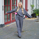 De Betsie Sweater is een heerlijk zachte sweater, hij valt wat oversized. De sweater heeft een ronde hals en lange mouwen. Het donkerblauwe materiaal is zacht en heeft een zilveren lurex ondertoon, wat deze sweater een sprankelende outlook geeft.