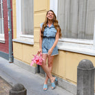 Deze trendy denim broderie playsuit is de perfecte aanvulling op je zomergarderobe! De playsuit is uitgevoerd in een lichte denim wassing en combineert een stoere look met romantische details. De delicate kanten broderie aan de mouwopeningen geeft de playsuit een speels en vrouwelijk karakter. De klassieke kraag en de knoopsluiting aan de voorzijde zorgen voor een tijdloze uitstraling, terwijl het trekkoord in de taille een flatterende en aanpasbare pasvorm creëert.