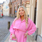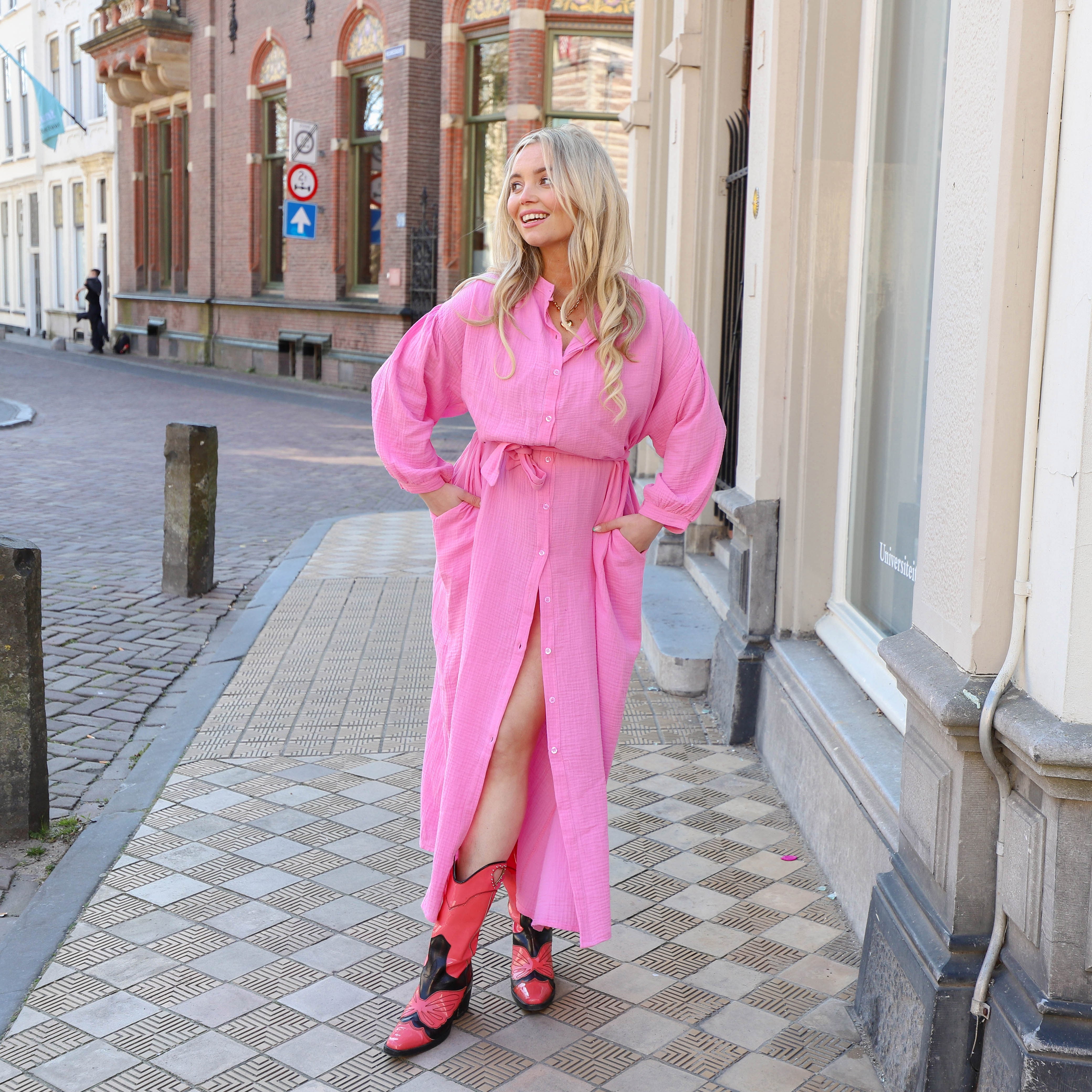 Deze roze "flowy dress" is een elegante en comfortabele toevoeging aan je garderobe. De jurk heeft een luchtige, losse pasvorm en is perfect voor de zomer en lente. Deze jurk is perfect voor een casual, maar stijlvolle look. Combineer met sandalen of espadrilles voor een complete outfit!