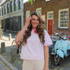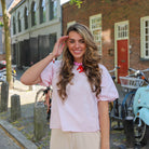 Deze trendy PC Frona Top Pink A Boo is een stijlvolle toevoeging aan je zomergarderobe! De top heeft een ronde halslijn en korte pofmouwen, wat een speels en vrouwelijk accent geeft.