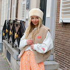 Deze Out of Office Teddy Bodywarmer is een behaaglijk en trendy item, perfect om een warme textuur en een speels detail aan je outfit toe te voegen. De bodywarmer is gemaakt van zachte teddy fleece in een veelzijdige ecru tint en is voorzien van een opvallende rode "Out of Office" patch op de borst. De drukknoopsluiting, de subtiele V-hals en de steekzakken maken dit een ideaal gelaagd item voor een comfortabele en fashionable look.