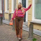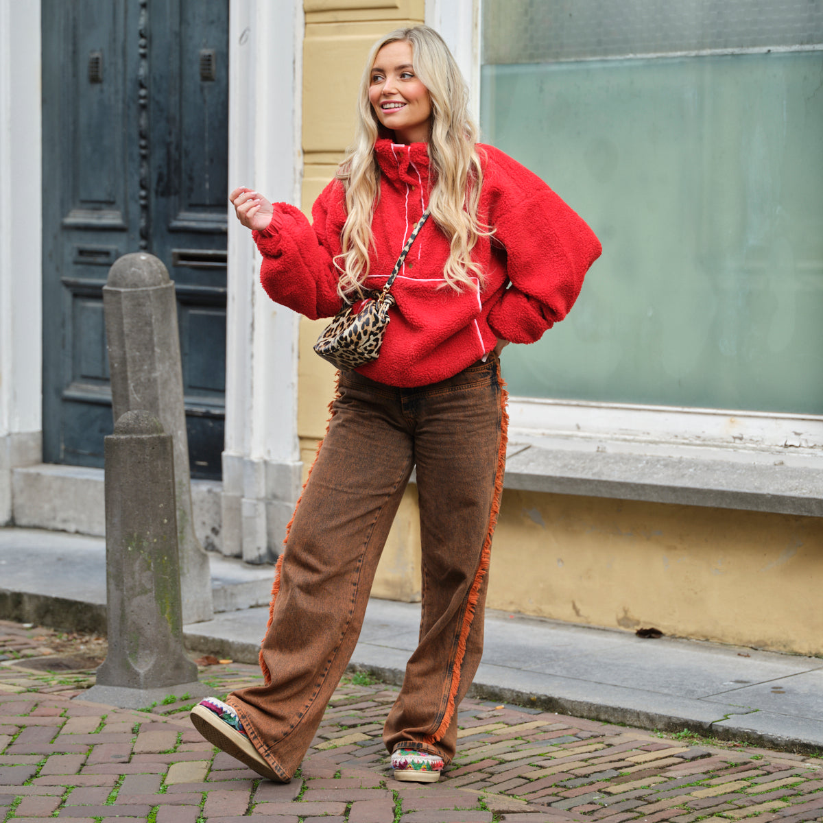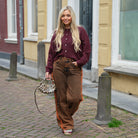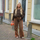 De CHARISSA broek in SPICED ORANGE is een katoenen high-waist fit met een rechte pijp. De warme oranjetint brengt pit in je herfstlook, en de stevige stof geeft een gestructureerde uitstraling. Combineer met een zachte knit of blazer voor een balanced look.