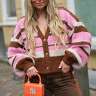 Colourful stripes, endless comfort. Deze NOOR cardigan met multistrepen heeeft een open fit, zachte feel en verlaagde schouder voor een relaxte vibe. Perfect als statement boven basics of als cosy laag bij koudere dagen. Warm, bold and made to stand out.