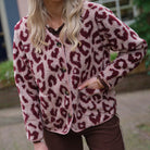 Deze Teddy Jas is een superzachte statement jas voor een speelse en warme look. De jas is gemaakt van teddy fleece en heeft een opvallende luipaardprint in roze met burgundy. De jas heeft een ronde hals en wordt afgemaakt met een effen roze bies langs de knoopsluiting en de zakken.