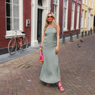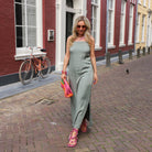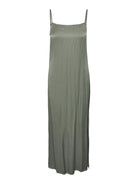 Mooie lange groene jurk. De jurk heeft spaghettibandjes en is een echte musthave voor in je kast. Combineer met een vrolijk vestje en leuke slippers.