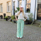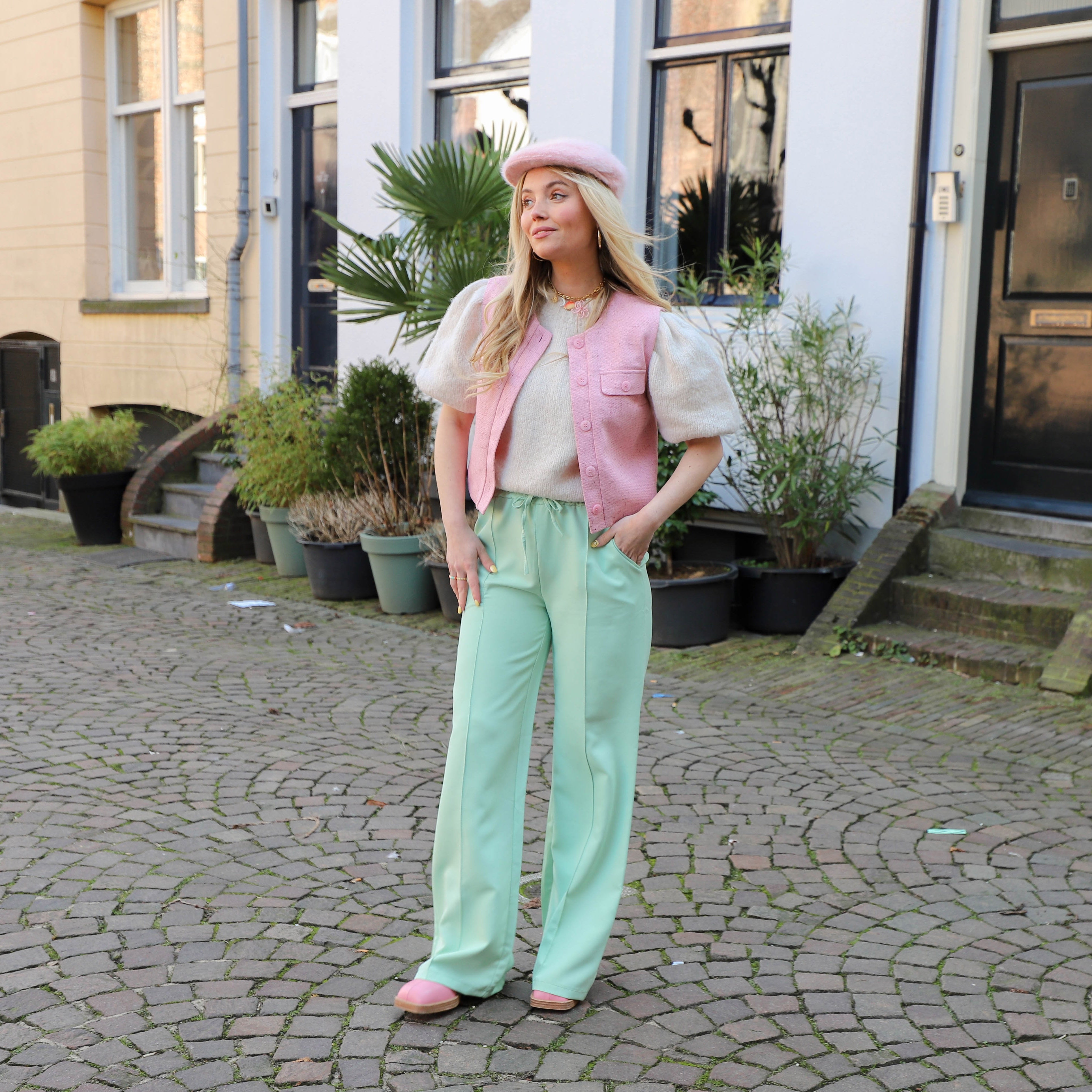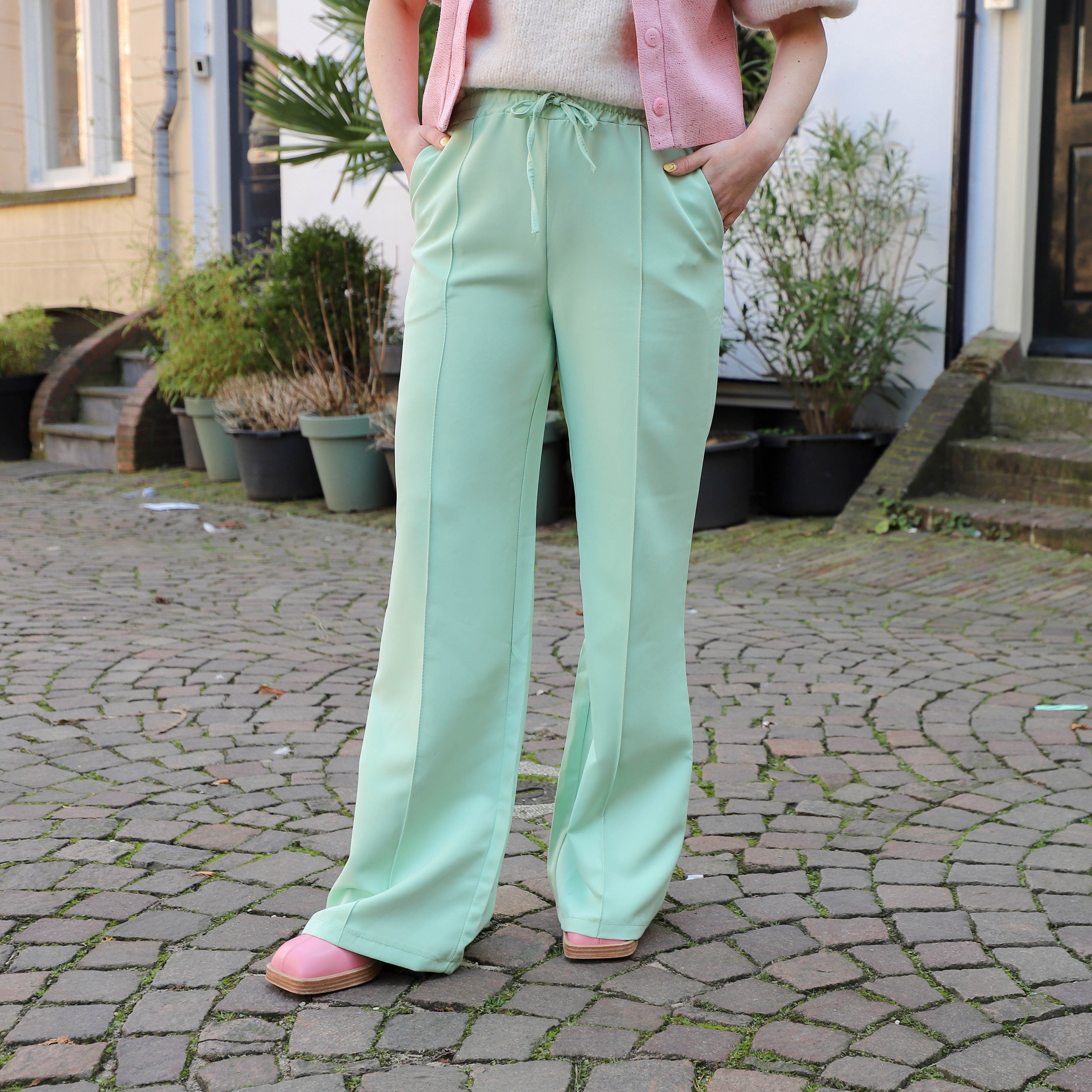 Deze mintgroene jogger is de perfecte combinatie van comfort en stijl. Gemaakt van een zachte mix van polyester en elastaan, is deze broek ideaal voor een relaxte dag thuis of een casual uitje. De elastische tailleband met trekkoord zorgt voor een perfecte pasvorm.
