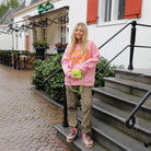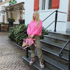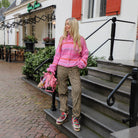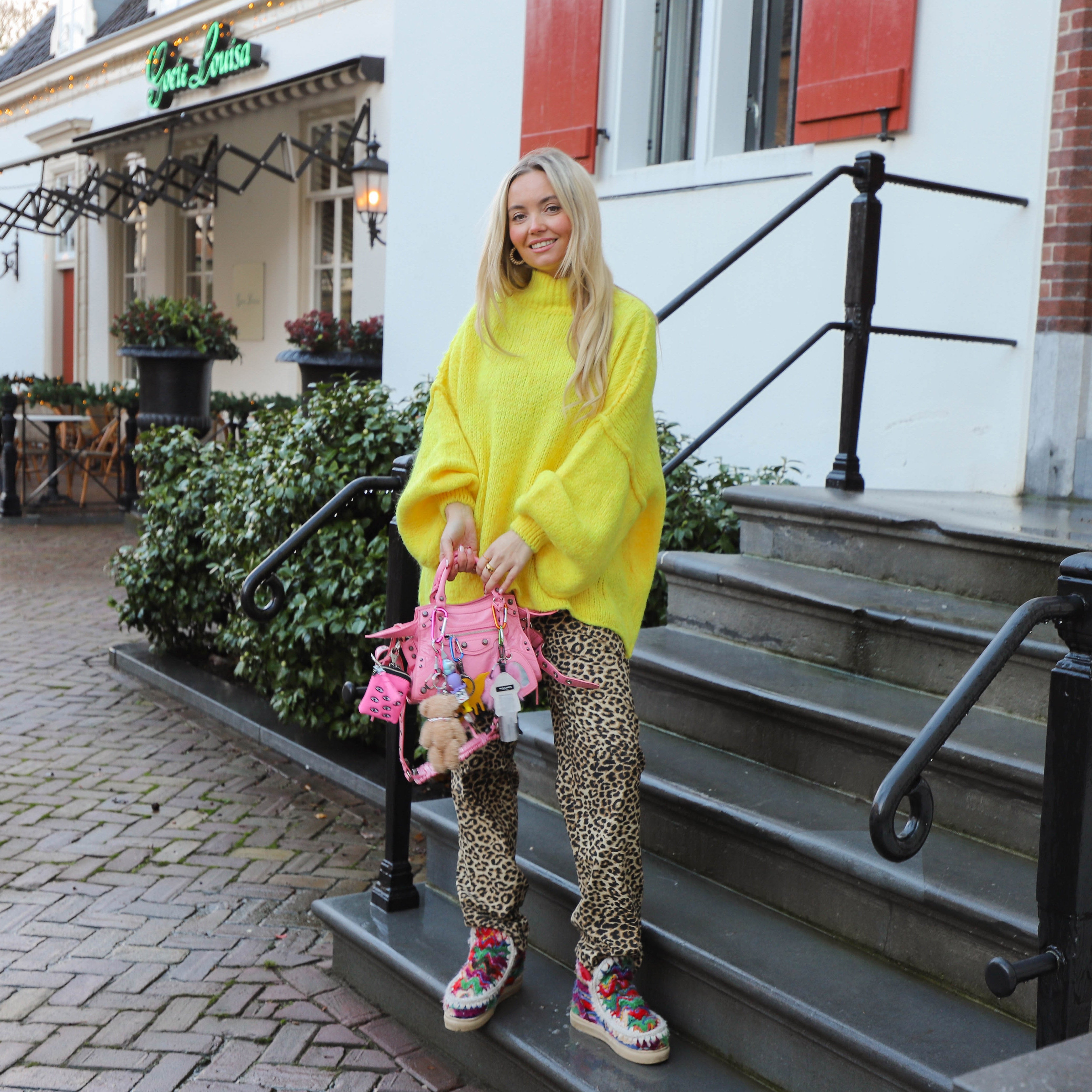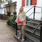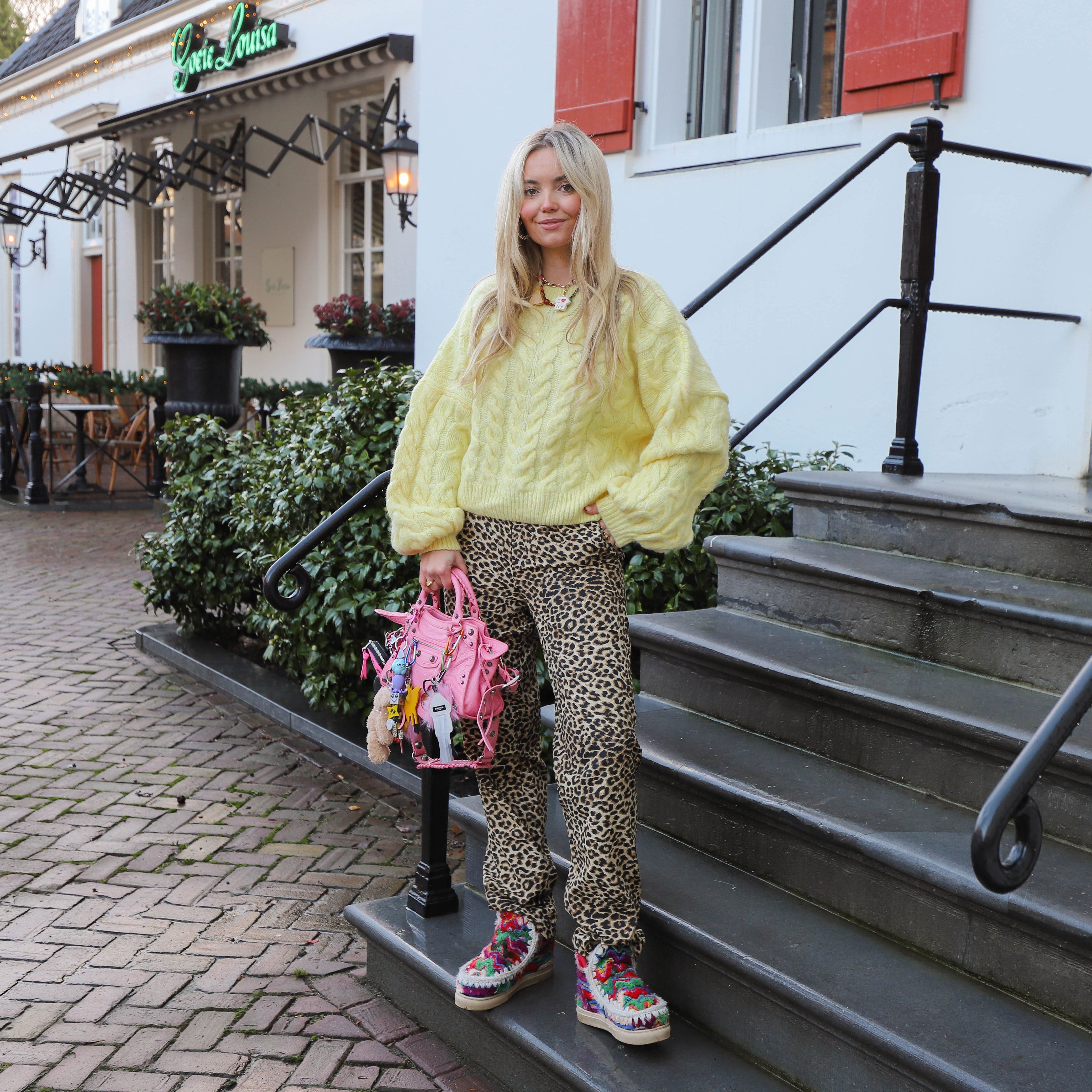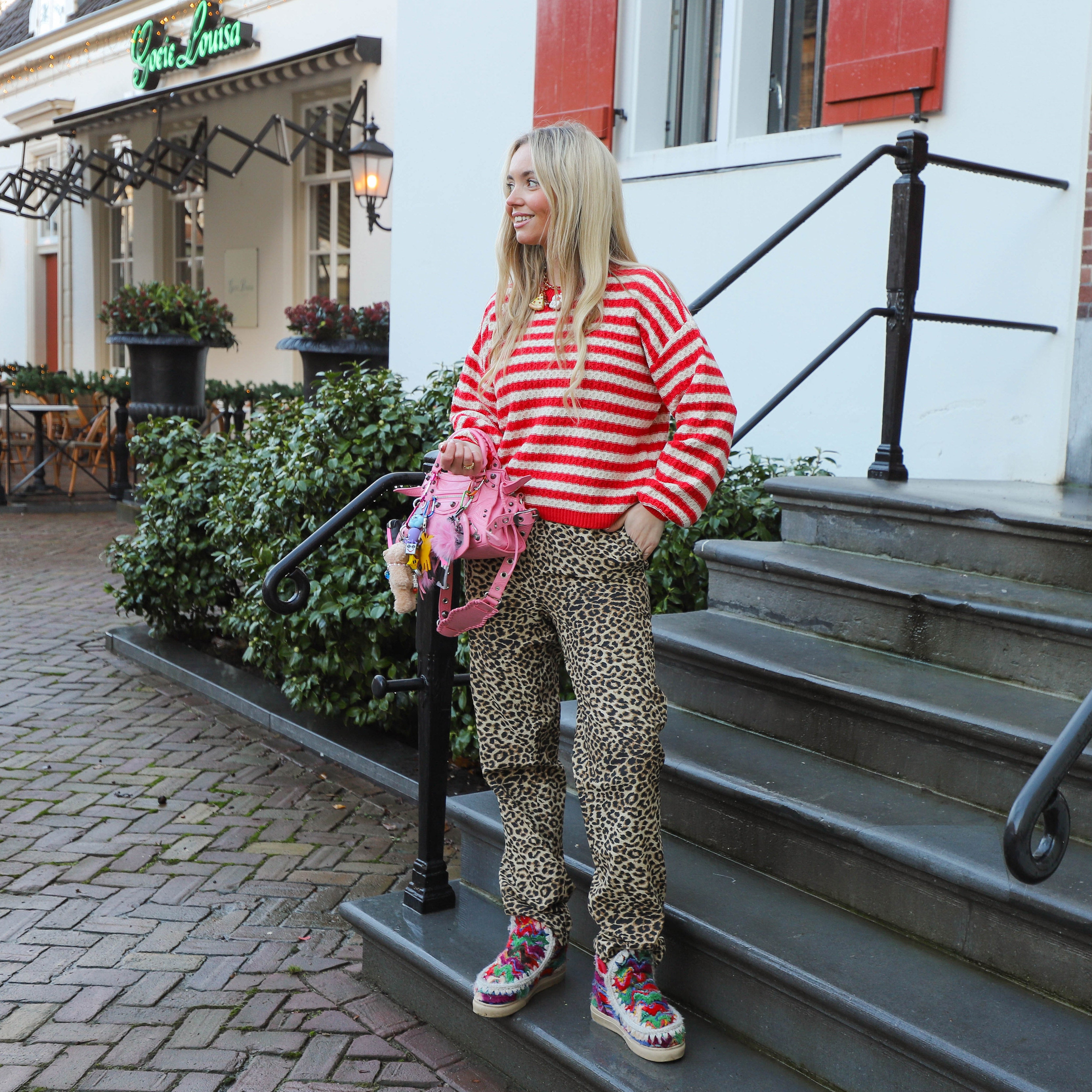 Mooie hight waisted leopard broek. De broek heeft een beige bruine zwarte print en een hoge taille. De broek heeft wijde pijpen en staat leuk met het bijpassende bloesje.