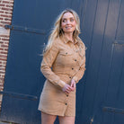 Mooie corduroy jurk van Noisy May. De jurk heeft een mooie kleur en sluit met drukknopen. De jurk heeft twee zakken op de borst en is leuk te combineren met een paar laarsjes.