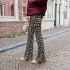 Deze broek is een echte eyecatcher dankzij de tijdloze luipaardprint en de trendy flared pijpen. De zachte en elastische stof, gecombineerd met de comfortabele elastische tailleband, zorgt ervoor dat deze broek de hele dag door perfect zit en met je meebeweegt. Een veelzijdig item dat elke look naar een hoger niveau tilt.