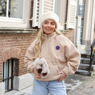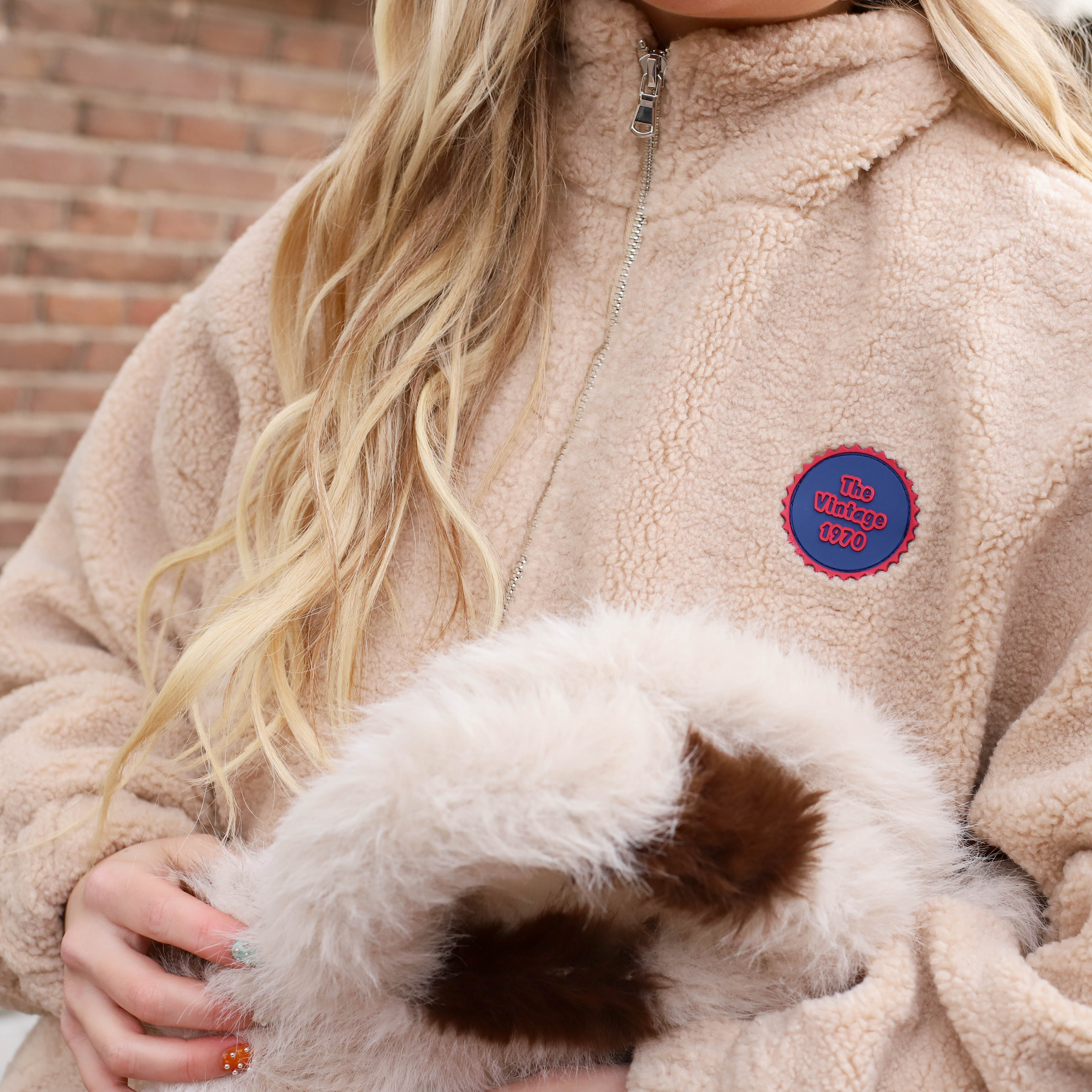 Dit Teddy Jack in een zachte ecru kleur is de ultieme comfy en warme toevoeging aan je wintergarderobe. Het jack heeft een heerlijke zachte, dikke teddy-textuur. De oversized pasvorm, de hoge kraag met een halve rits en de ruime kangoeroezak aan de voorkant zorgen voor een sportieve en nonchalante uitstraling. De ronde, geborduurde patch op de borst geeft een speels kleuraccent.