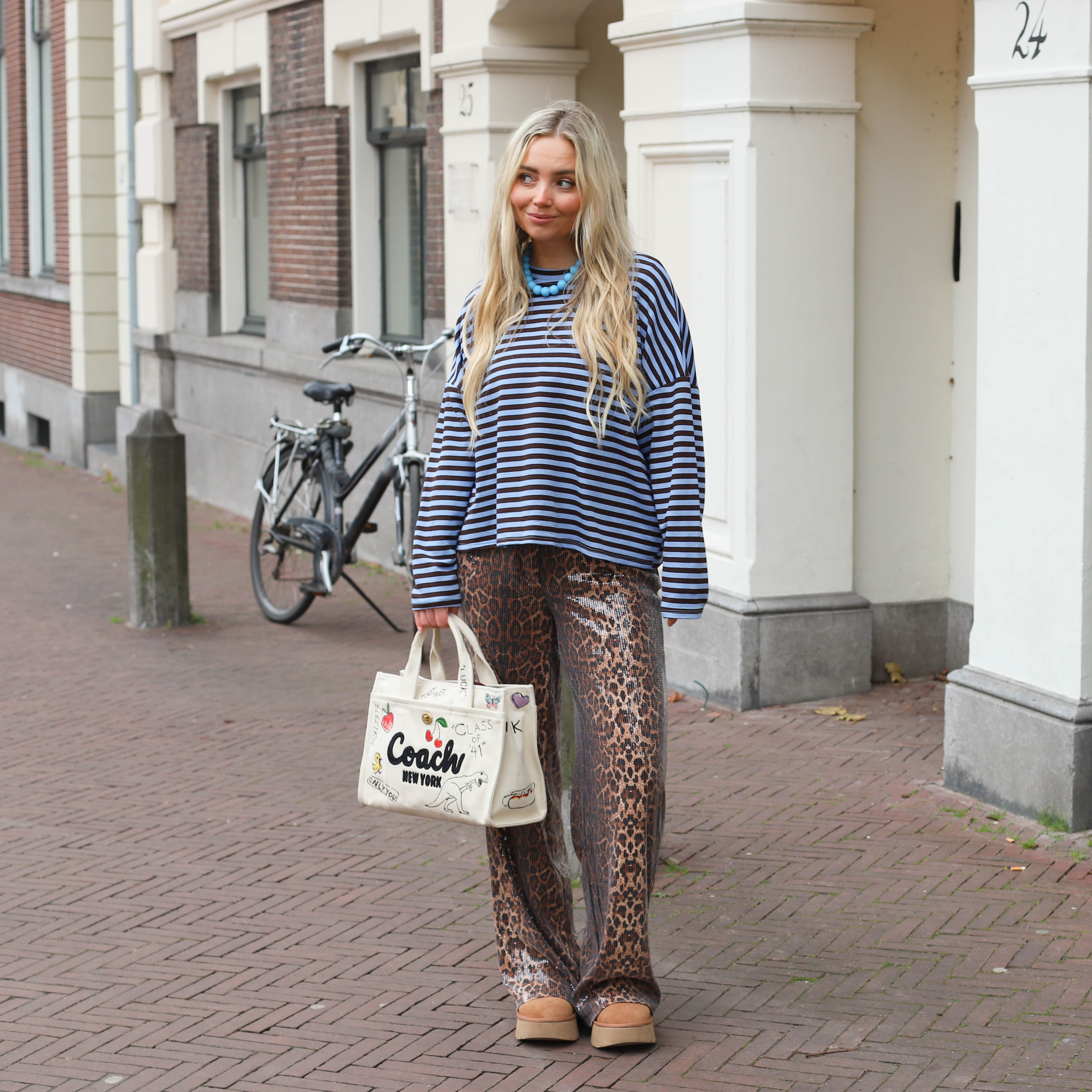 Leopard pantalon blauwe bies