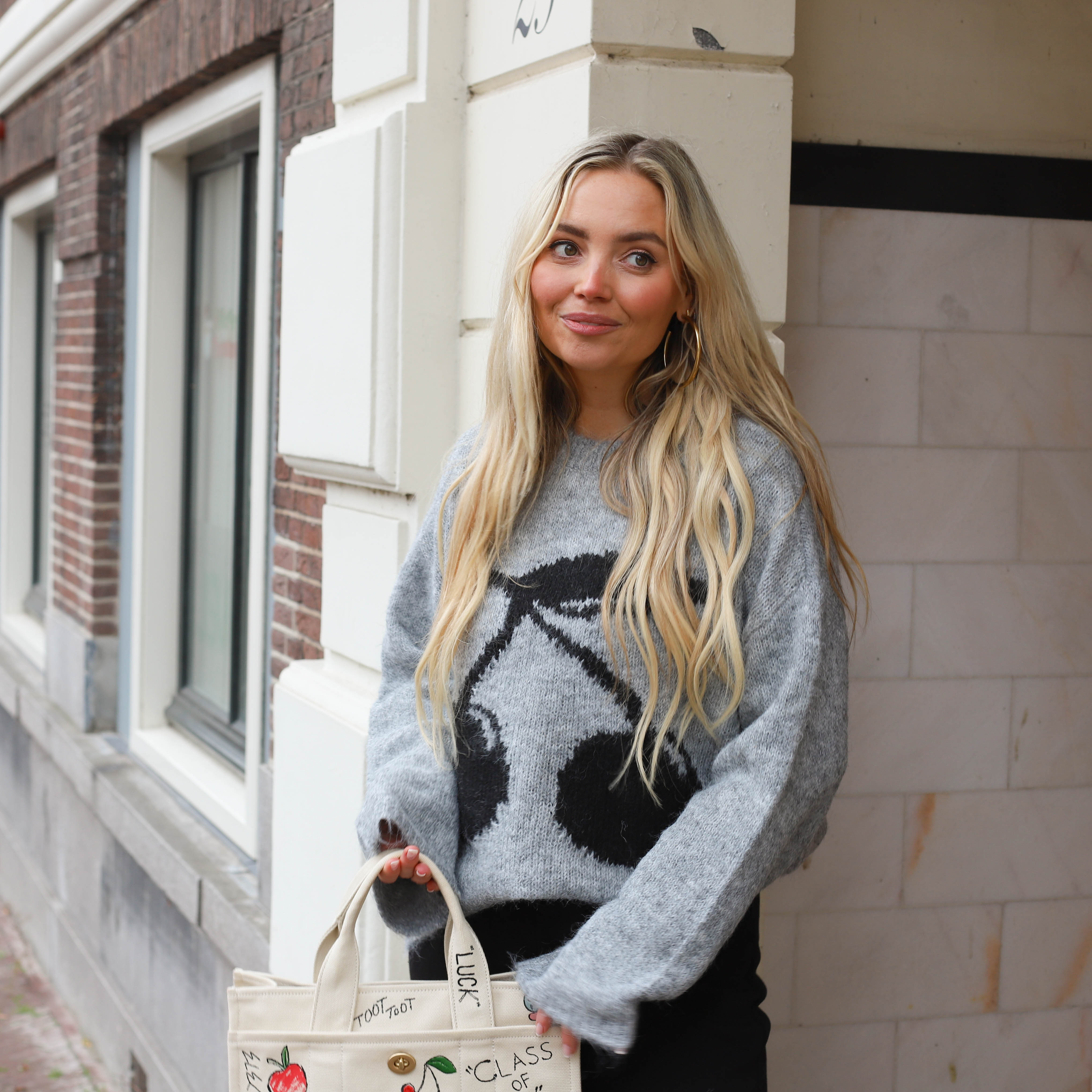 Retro après ski sweater grijs