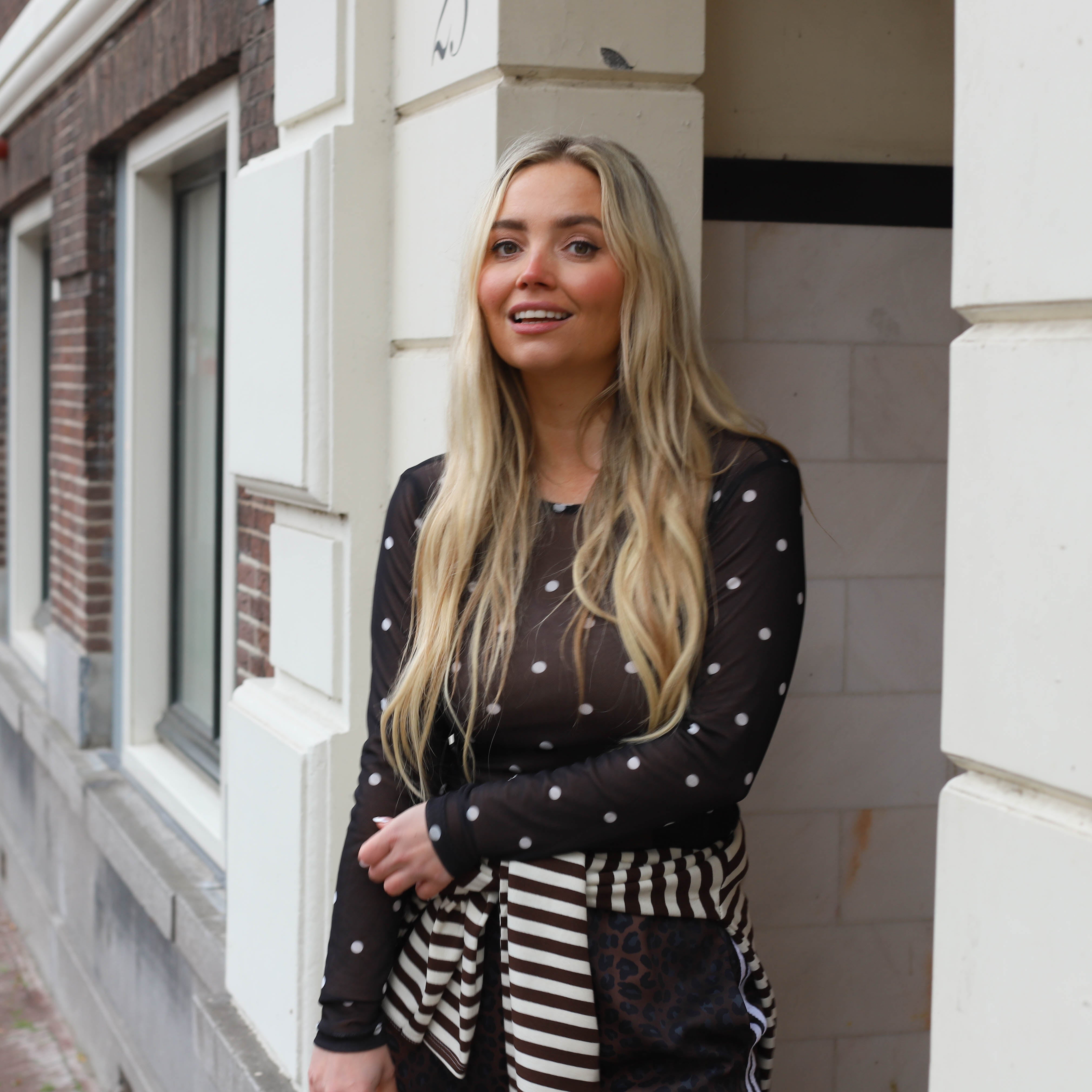 Bolletjes cardigan bruin