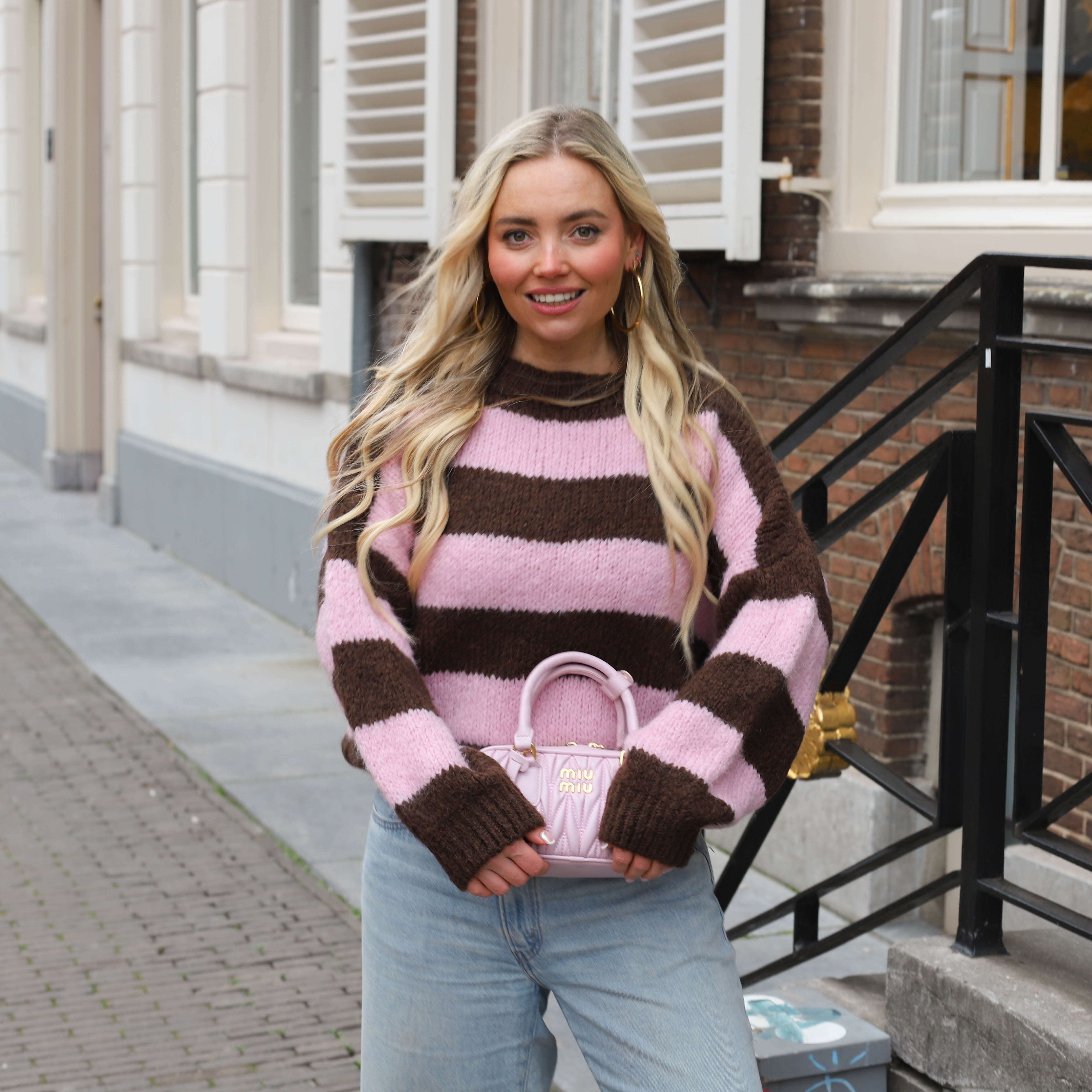 Streep knit roze bruin