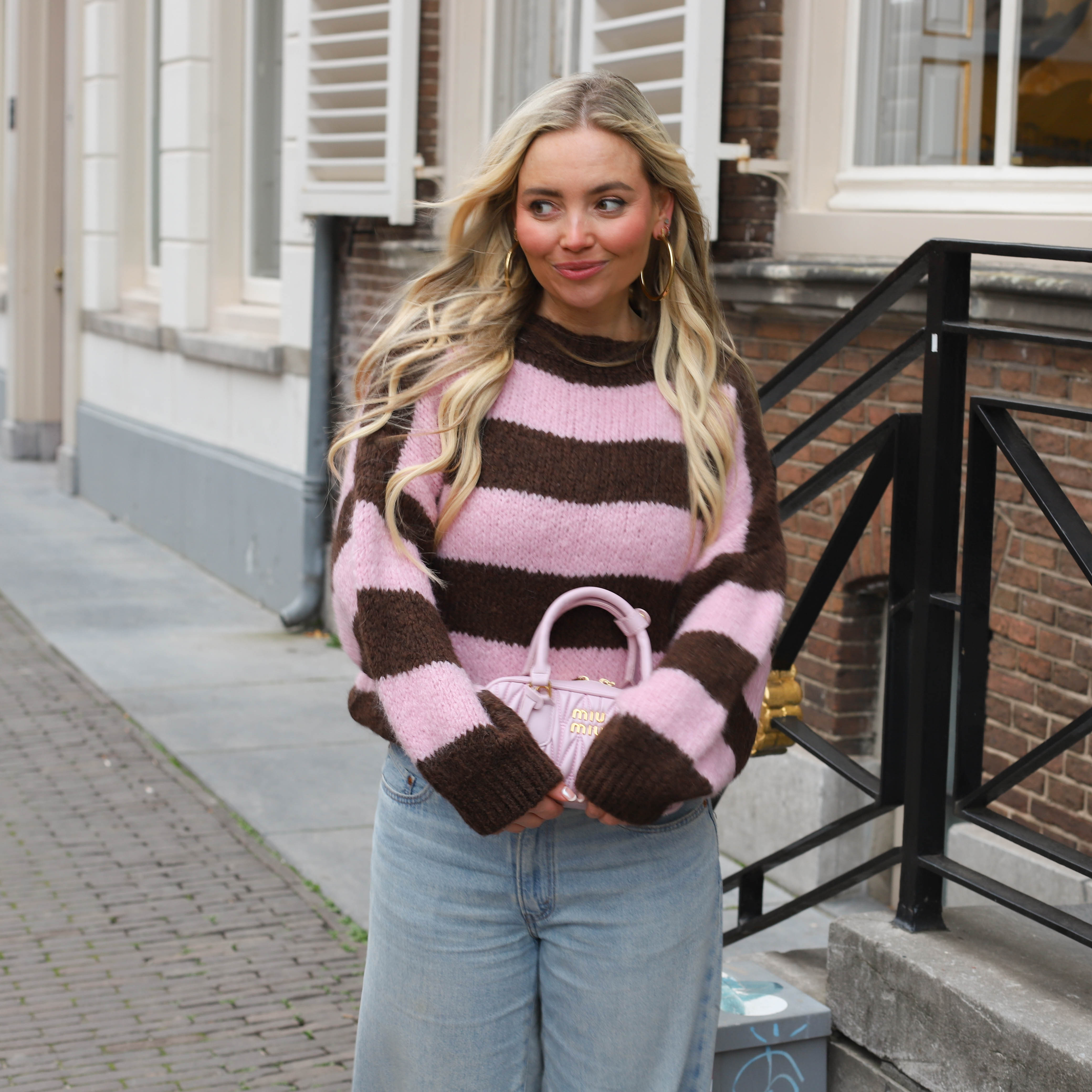 Streep knit roze bruin