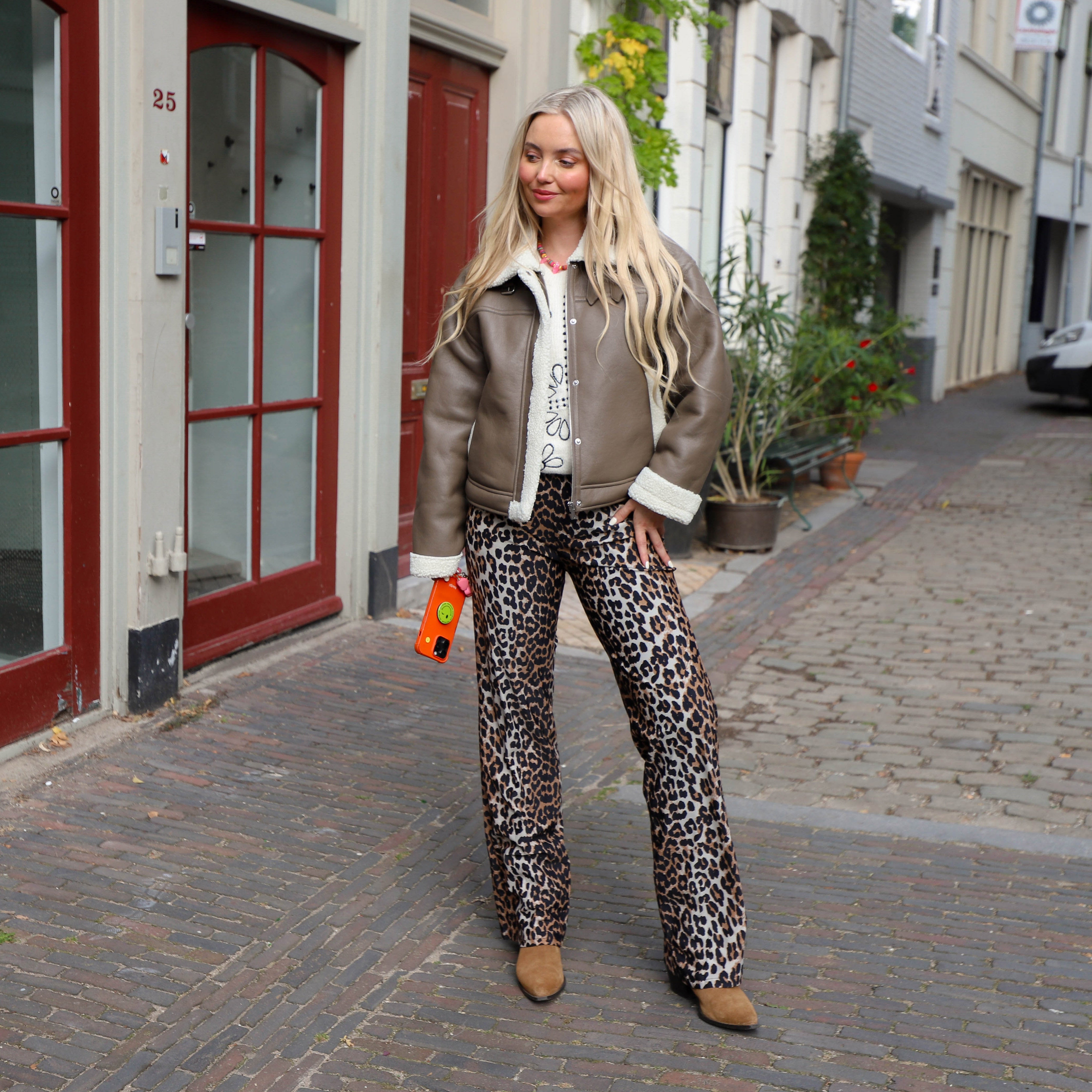 Mooi bruin piloten jack met witte teddy details. Het jasje is stoer en zit heerlijk. Het jasje sluit met rits en heeft zakken.